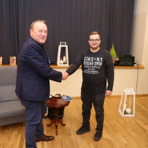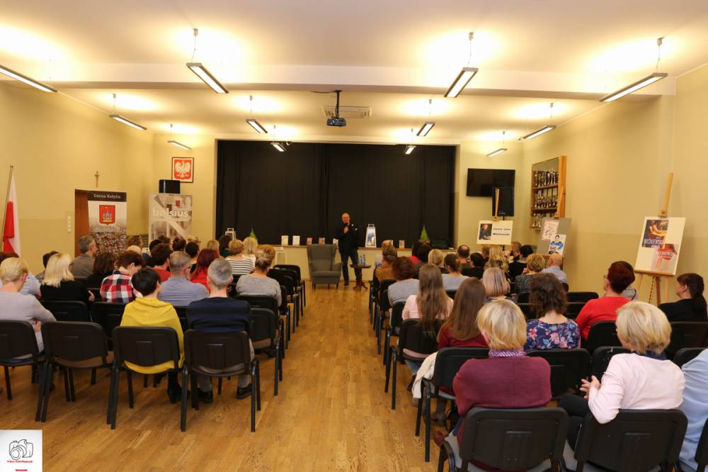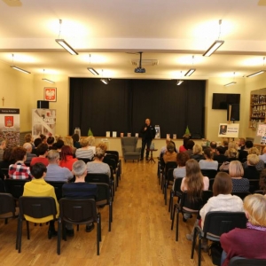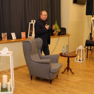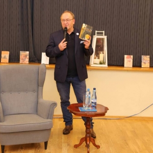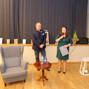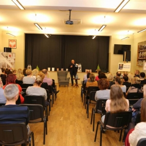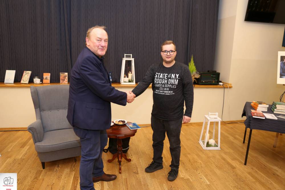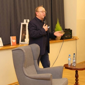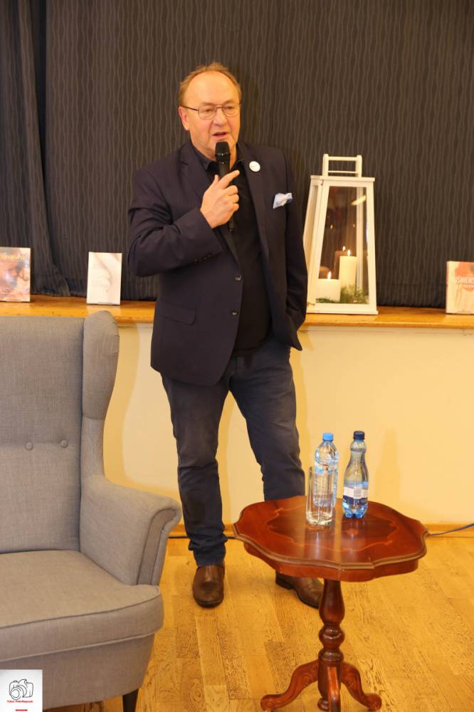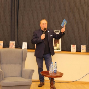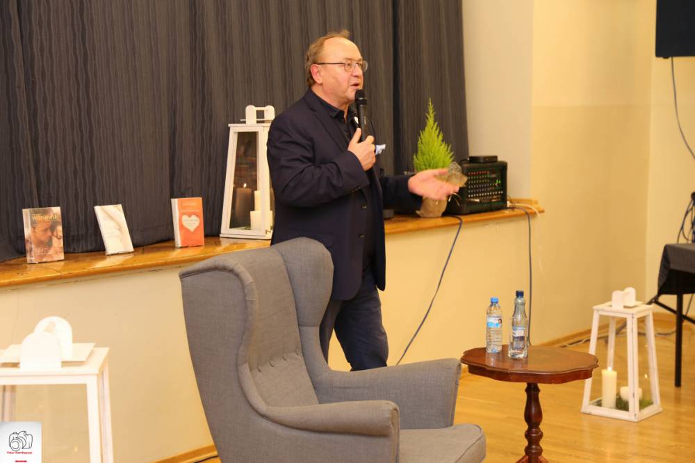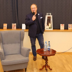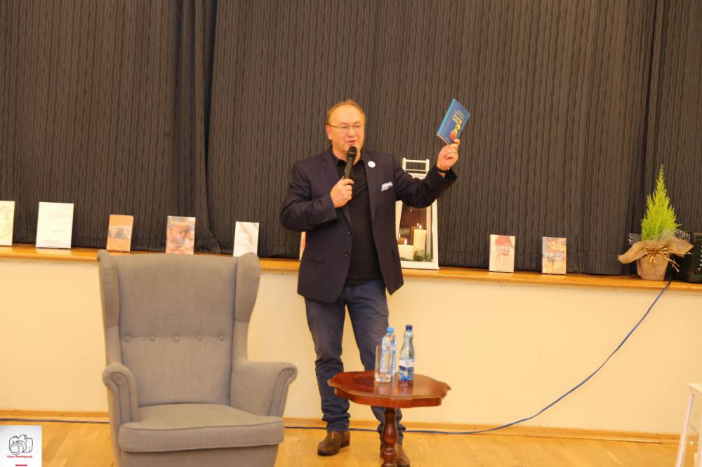 Gość honorowy od pierwszej chwili nawiązał serdeczny kontakt ze słuchaczami. Opowiadał jak rozpoczęła się jego historia z pisaniem. Pisać zaczął przypadkowo, pod wpływem smutnych wydarzeń życiowych. Jego debiutancka powieść ,,Samotność w sieci” stała się bestsellerem i zaczęła żyć swoim życiem, wprowadzając go w artystyczny świat.