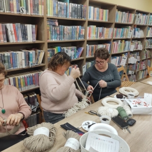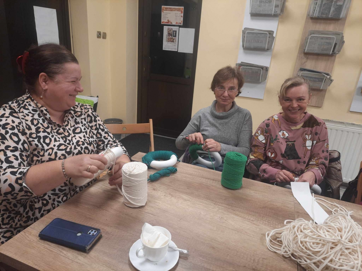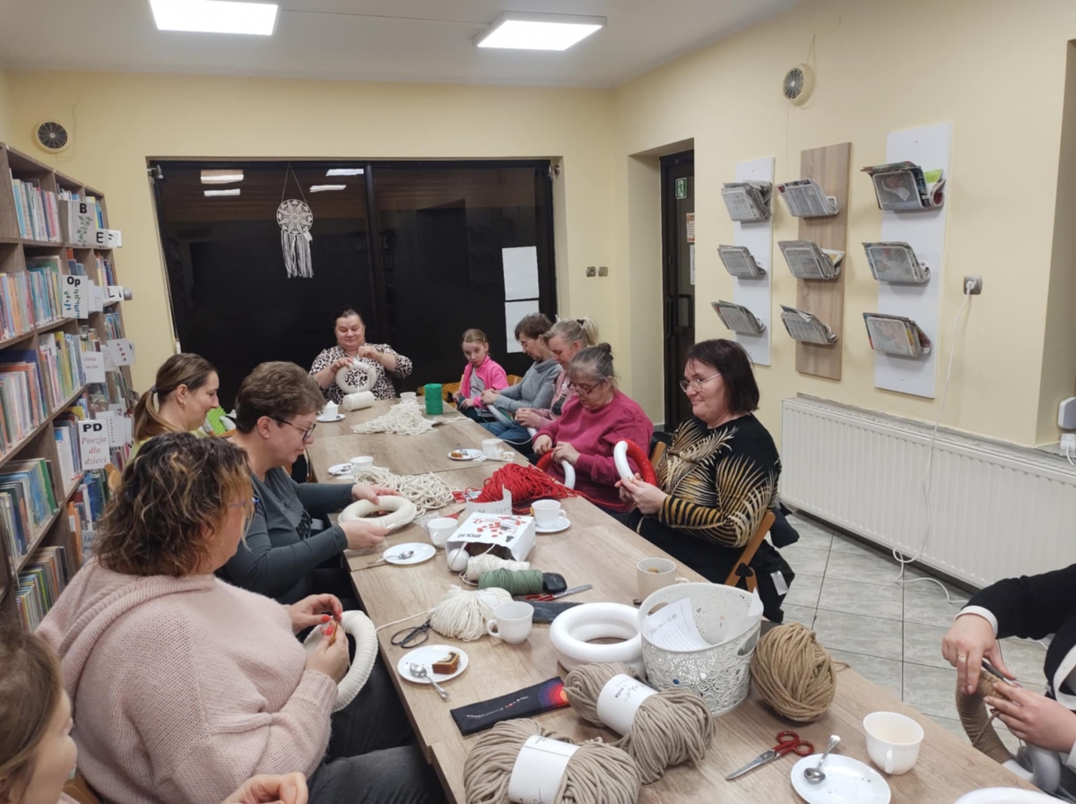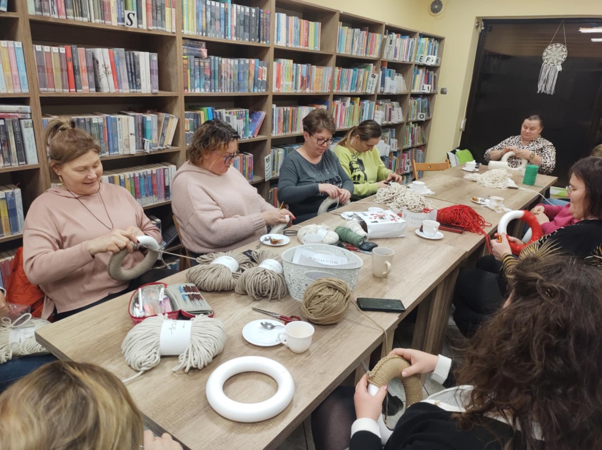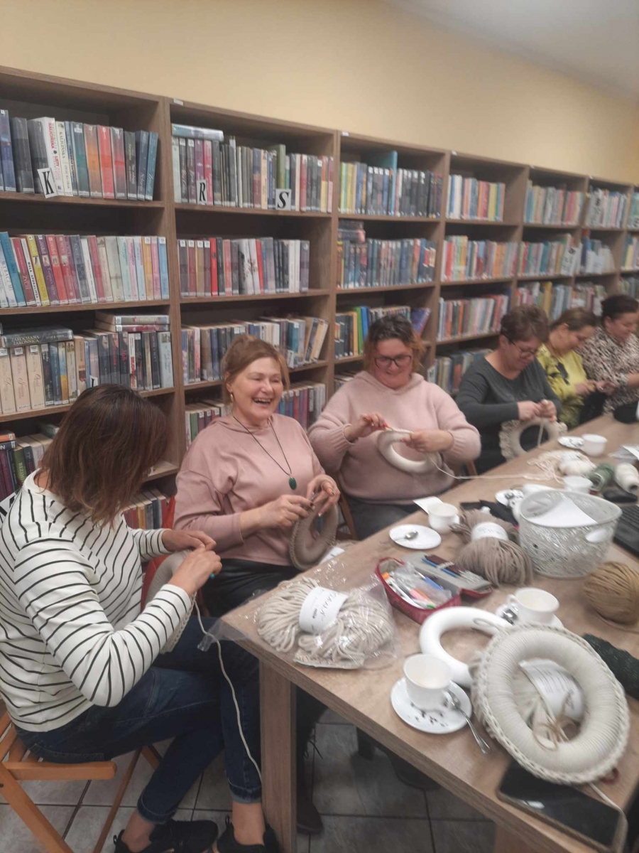 W piątkowy wieczór 15 listopada, w Filii Bibliotecznej w Smolicach, zebrały się miłośniczki rękodzieła na wspólne dzierganie. Uczestniczki warsztatów ze sznurka tworzyły świąteczne wianki. Adeptki szydełkowania z zapałem wykonywały swoje ozdoby. Panie ten listopadowy wieczór spędziły z dużą dawką humoru. Rozmawiały na tematy poważne i niepoważne, popijając kawę oraz jedząc pyszne ciasto. Zadowolone ze swojej pracy z dumą na zakończenie zaprezentowały wykonane dzieła. Wianki staną się ozdobą domów w czasie nadchodzących świąt. Bardzo dziękujemy Paniom za przybycie oraz miło spędzony czas. Na kolejne spotkanie zapraszamy w grudniu.