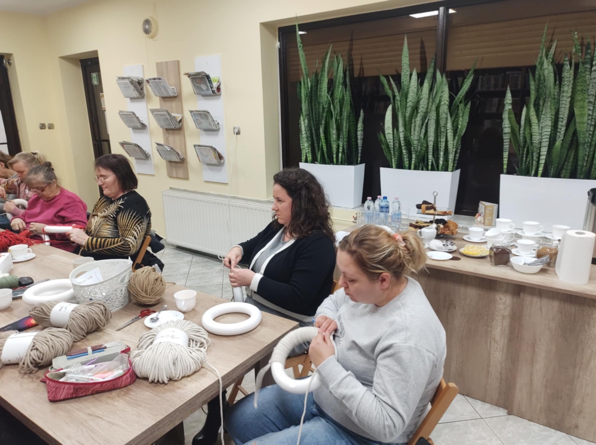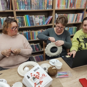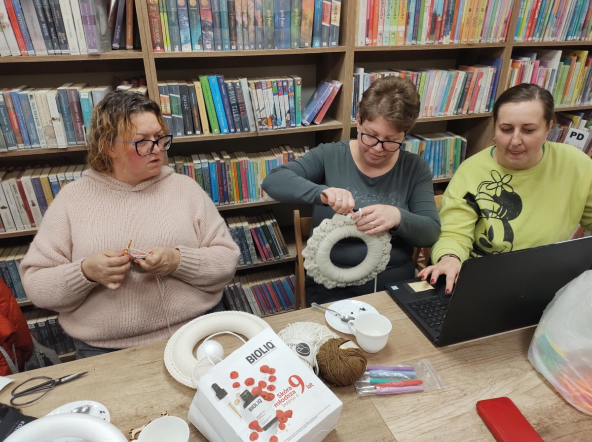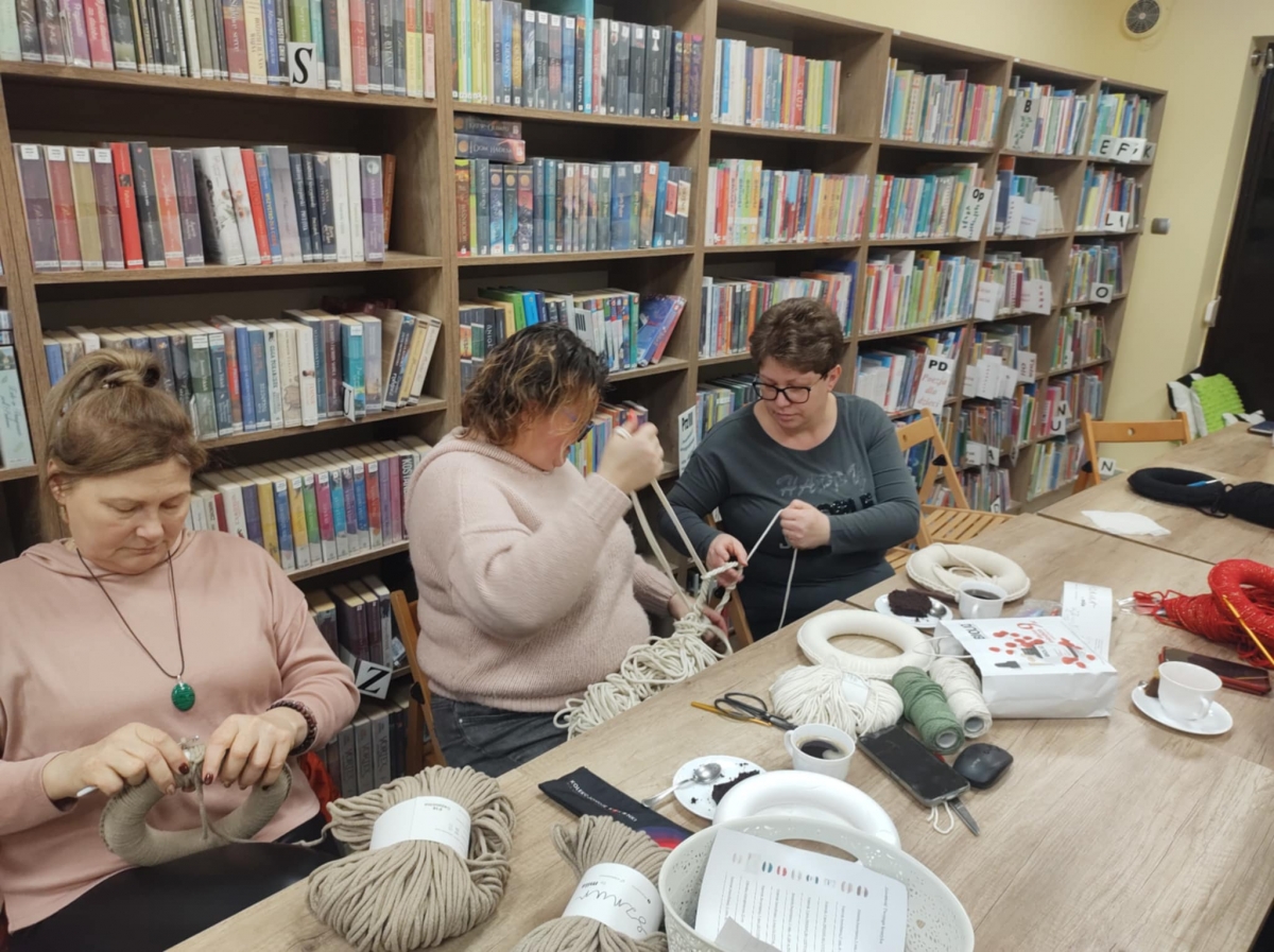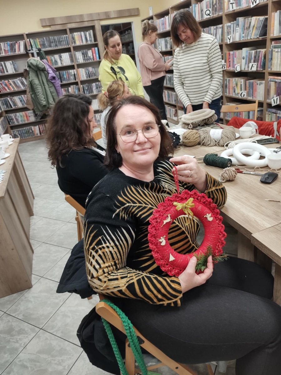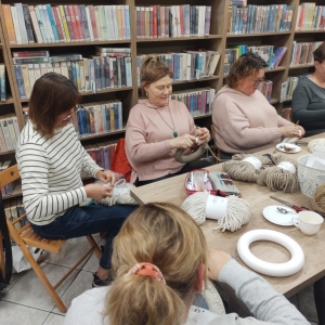 W piątkowy wieczór 15 listopada, w Filii Bibliotecznej w Smolicach, zebrały się miłośniczki rękodzieła na wspólne dzierganie. Uczestniczki warsztatów ze sznurka tworzyły świąteczne wianki. Adeptki szydełkowania z zapałem wykonywały swoje ozdoby. Panie ten listopadowy wieczór spędziły z dużą dawką humoru. Rozmawiały na tematy poważne i niepoważne, popijając kawę oraz jedząc pyszne ciasto. Zadowolone ze swojej pracy z dumą na zakończenie zaprezentowały wykonane dzieła. Wianki staną się ozdobą domów w czasie nadchodzących świąt. Bardzo dziękujemy Paniom za przybycie oraz miło spędzony czas. Na kolejne spotkanie zapraszamy w grudniu.