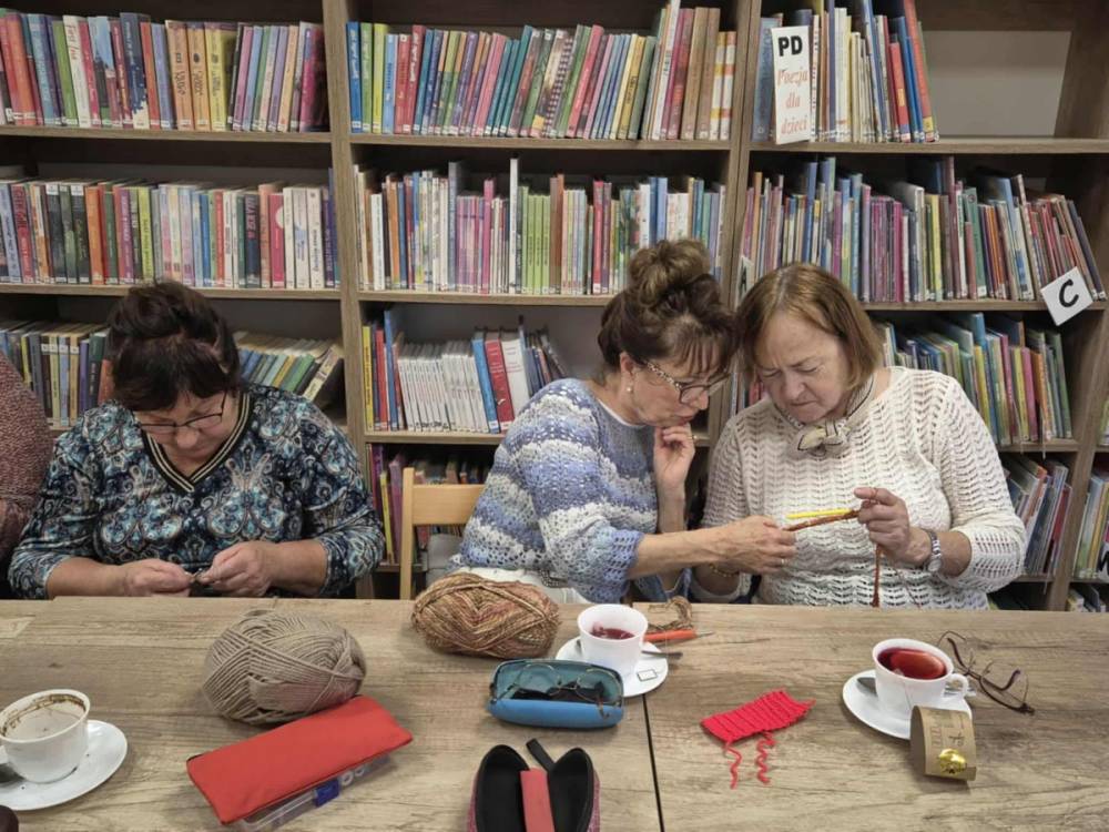W piątek 26 września w Filii Bibliotecznej w Smolicach (po wakacyjnej przerwie) spotkały się miłośniczki rękodzieła na wspólne dzierganie. Prowadzącą warsztaty była Pani Emilia - znana lokalna rękodzielniczka. Licznie zebrane Panie szydełkowały opaski na głowę. Idealnie sprawdzą się one podczas jesiennych spacerów, chroniąc przed porywistym wiatrem. Przy kawie z pysznym ciastem, Panie wymieniały się doświadczeniem, doradzały i konsultowały ze sobą tworzone rękodzieło. To jesienne spotkanie w miłym towarzystwie minęło bardzo szybko.