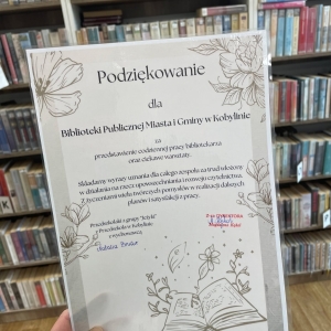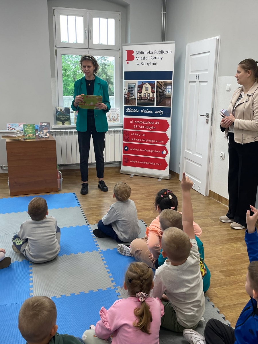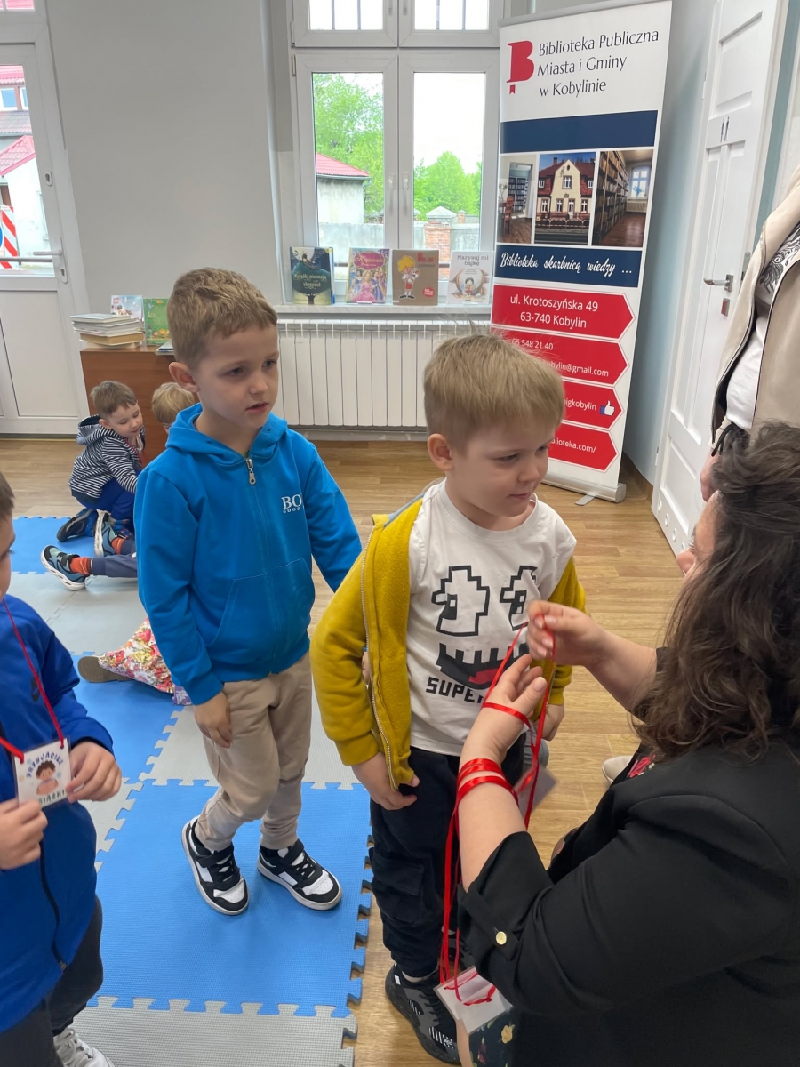 Na zakończenie, po wymienieniu zasad dotyczących dbania o książki, najmłodsi otrzymali odznaki Przyjaciół Książek oraz oficjalne zaproszenia do odwiedzin kobylińskiej Biblioteki Publicznej wraz z rodzicami. Zaproszenia rozdawane są w ramach ogólnopolskiej akcji ,,Mała Książka Wielki Człowiek”, w ramach której przedszkolakom wręczane są darmowe egzemplarze książek.