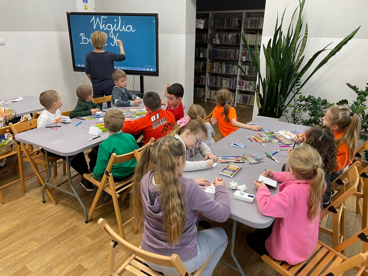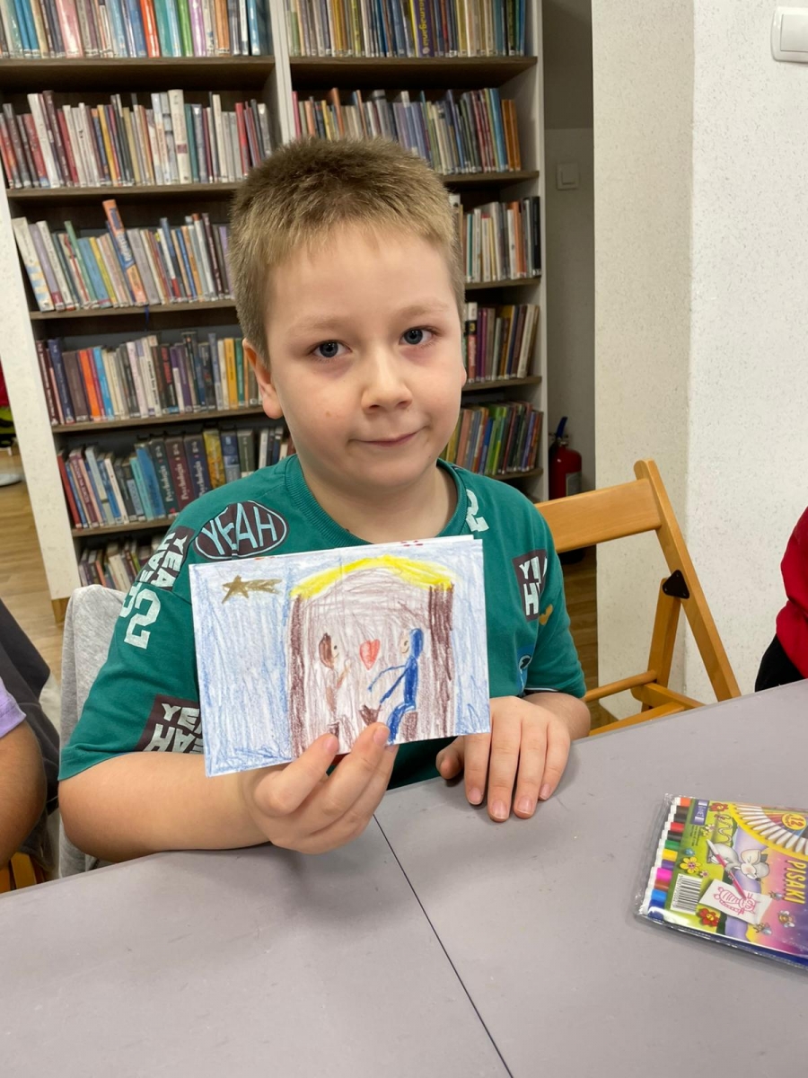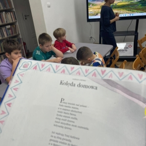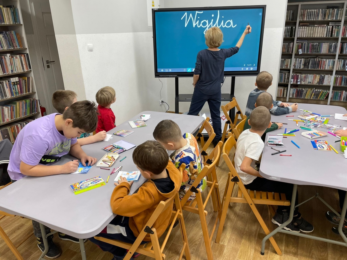 Uczniowie obejrzeli krótki filmik, udostępniony przez portal Uniwersytet Dzieci, w którym Pani ilustratorka zabrała nas wirtualnie do swojej pracowni i opowiedziała o swojej pracy. Następnie uczniowie otrzymali mini-książeczki i wysłuchali wierszyk o tematyce świątecznej.