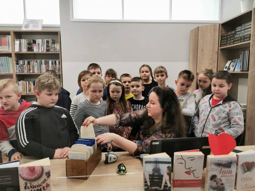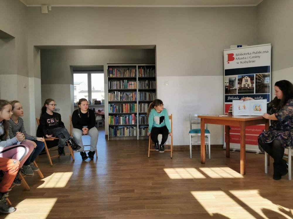 Dnia 1 marca 2022 r. kobylińską książnicę odwiedziła klasa II A wraz z wychowawcą Panią Teresą Grobelną. Spotkanie w Bibliotece Publicznej było dla uczniów zwieńczeniem tygodniowego cyklu rozmów o książkach i bibliotekach. Niesamowite spotkanie rozpoczęliśmy od wspólnego czytania. Poznaliśmy historię Lusi i Antka opisaną w utworze ,,O dzieciach, które kochają książki". Następnie do rąk młodych użytkowników Biblioteki Publicznej trafiły różne rodzaje książek, od tradycyjnych po książki- zabawki, a nawet książka z dziurą ! Podczas spotkania nie można było zapomnieć o spacerze po instytucji i poznaniu jej najskrytszych zakamarków oraz tajemnic. Uczniowie poznali zasady funkcjonowania wypożyczalni, tworzenia opisów bibliograficznych, a także rozmieszczenia księgozbioru w bibliotece. Wizyta wyjątkowych gości była bardzo interesująca. Serdecznie dziękujemy i zapraszamy na kolejne spotkania z książkami w naszych bibliotecznych progach !
