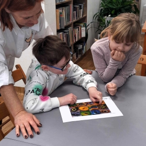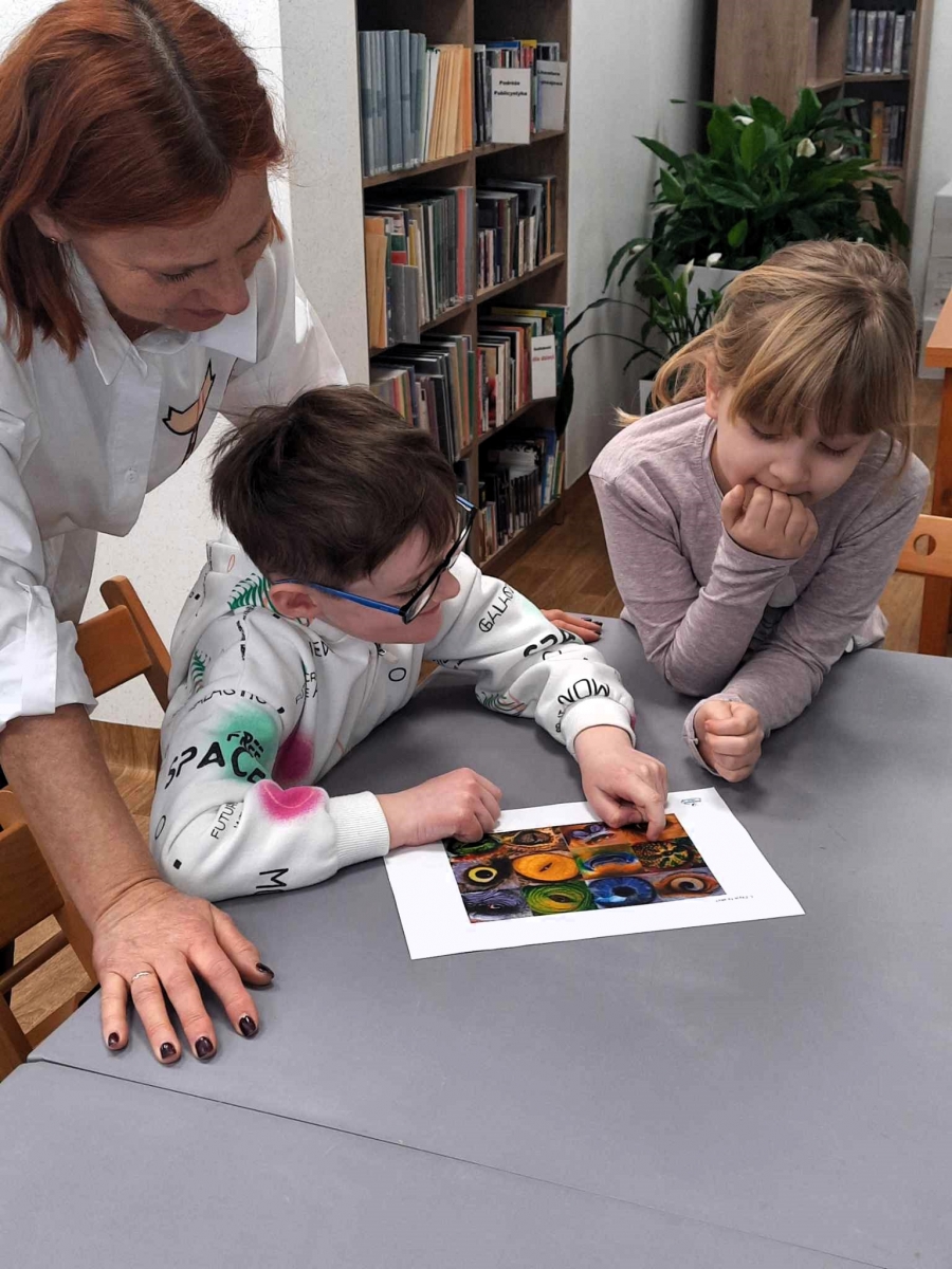 Mówiliśmy o iluzjach optycznych, które sprawiają, że wzrok człowieka można „oszukać”. Okazało się, że dzieci są zaznajomione z tematem, a nawet mają kilka książek z ilustracjami iluzji optycznych w swojej klasowej biblioteczce.