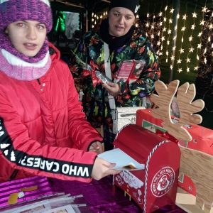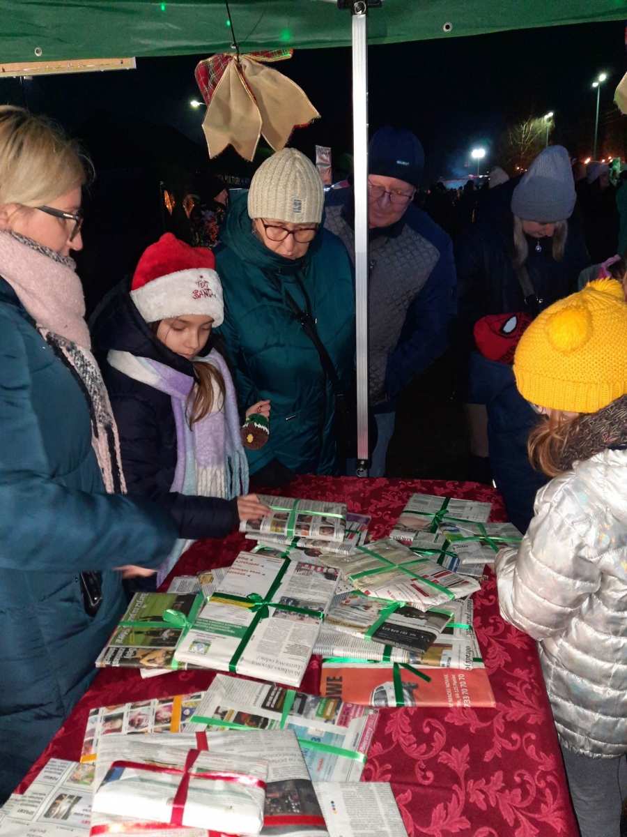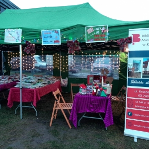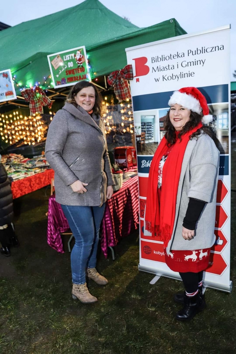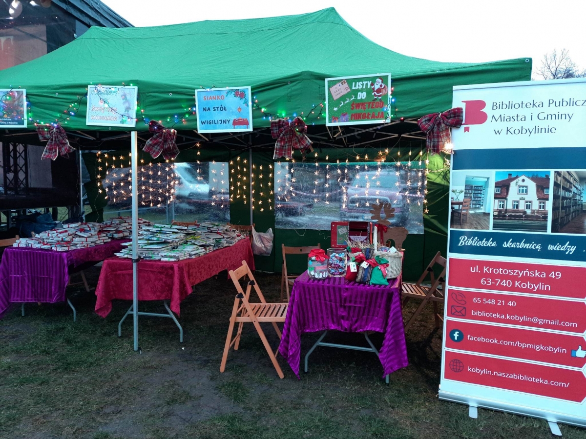 10 grudnia 2023 r. Biblioteka Publiczna uczestniczyła w KOBYLIŃSKIM JARMARKU BOŻONARODZENIOWYM. Stworzyliśmy własne stoisko, gdzie można było znaleźć książki dla dorosłych, młodzieży, dzieci. Oferowaliśmy również sianko na stół wigilijny. Na najmłodszych czekała skrzynka na listy do Świętego Mikołaja, a także gotowe wzory listów, koperty, znaczki pocztowe, a nawet naklejki z adresem Mikołaja. Ponadto bibliotekarki częstowały wszystkich odwiedzających cukierkami. Rozdaliśmy 322 książki, 44 woreczki z siankiem, zostało napisanych 56 listów z prośbą o prezenty.