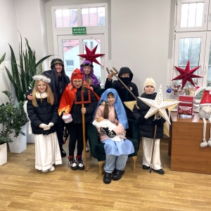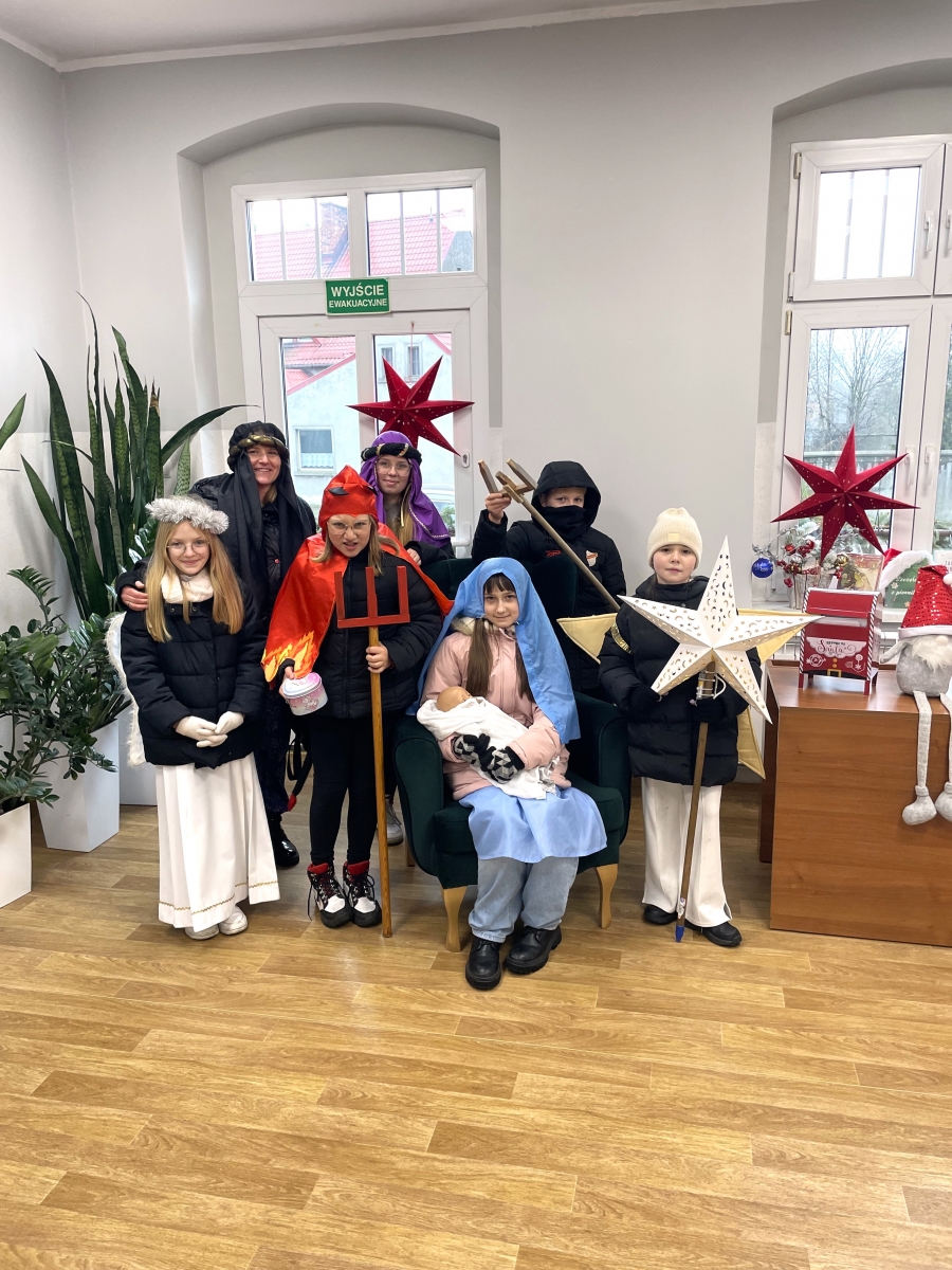 W wigilijny dzień naszą bibliotekę odwiedzili Kolędnicy. Zaśpiewawszy kolędy, życzyliśmy sobie radosnych Świąt Bożego Narodzenia.