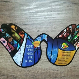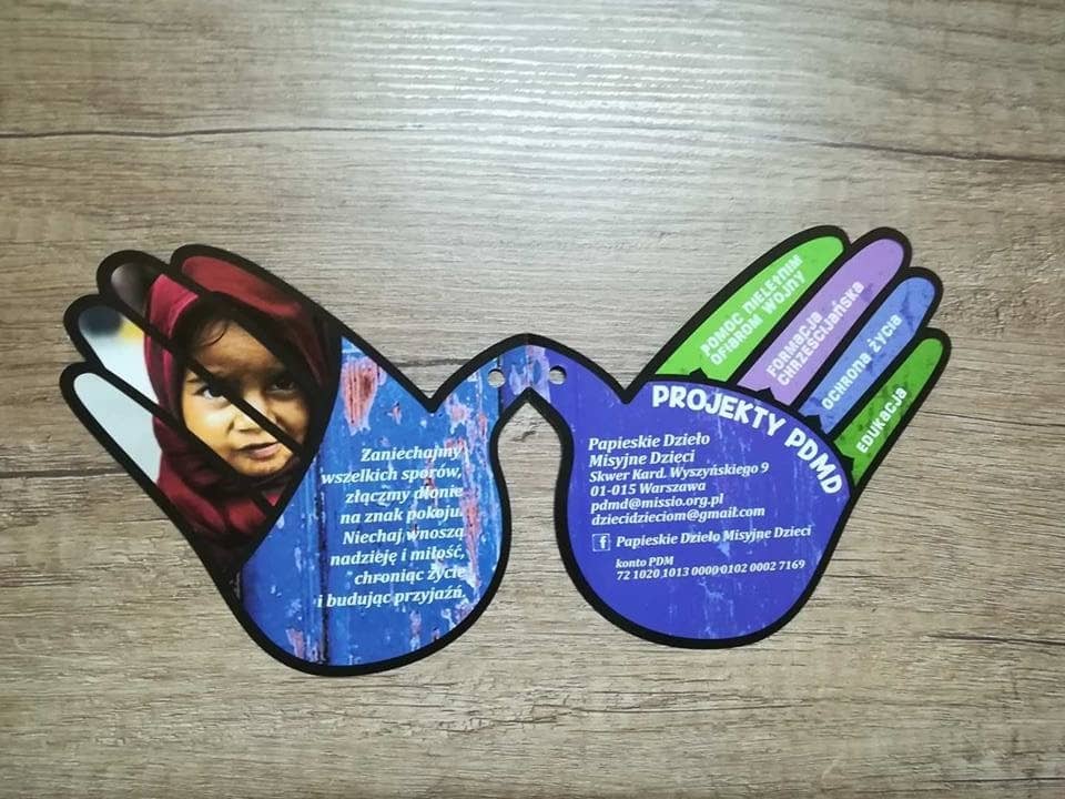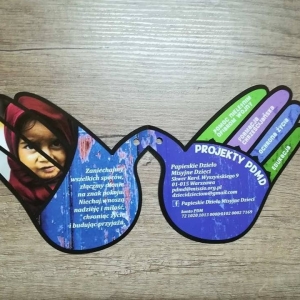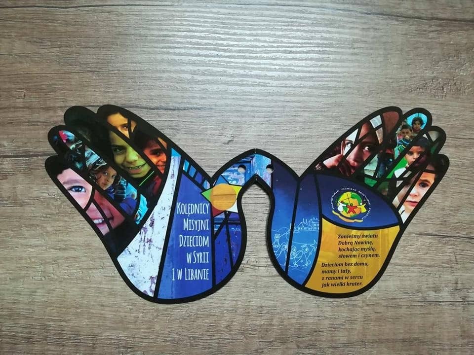 Mali kolędnicy w darze przynieśli kartkę z obrazkiem rozłożonych dłoni, połączonych kciukami- symbol bezinteresownej braterskiej pomocy.