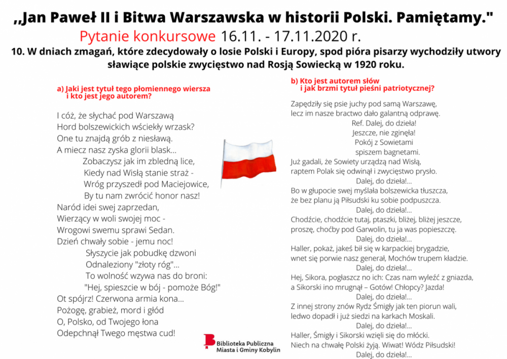 Dzisiaj publikujemy ostatnie (dziesiąte) pytanie w konkursie historycznym on-line „Jan Paweł II i Bitwa Warszawska w historii Polski. Pamiętamy” .