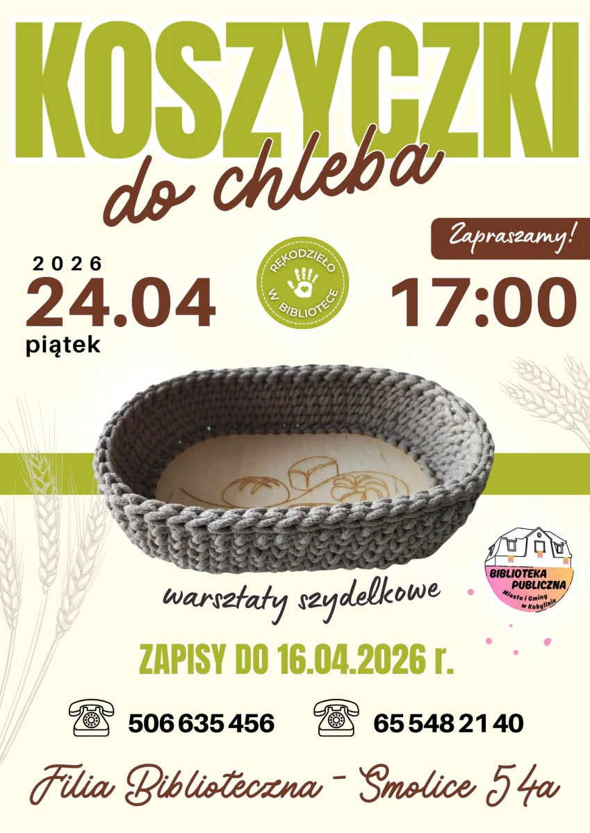 24 kwietnia o godzinie 17:00 w Filii Bibliotecznej w Smolicach będziemy tworzyć unikalne koszyczki do pieczywa.