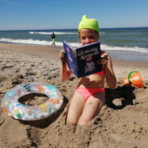 Zadaniem uczestników było wykonanie zdjęcia na którym prezentowali się wraz z aktualnie czytaną książką. Fotografię należało wykonać na tle wakacyjnego krajobrazu- na plaży, w ogórdku, na działce, w pociągu, w domu ...