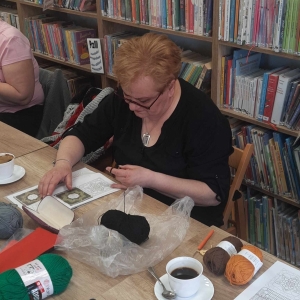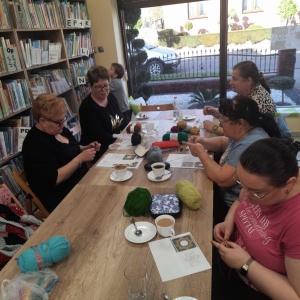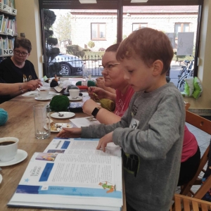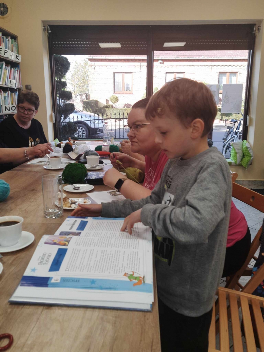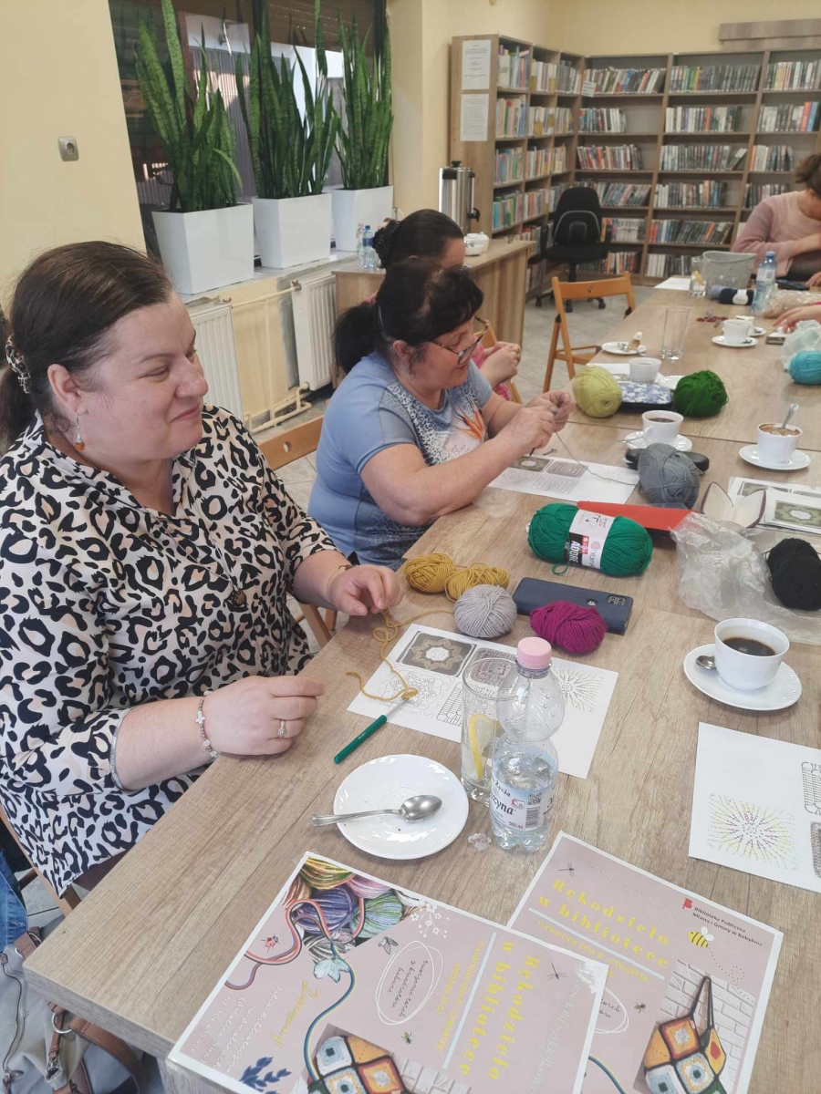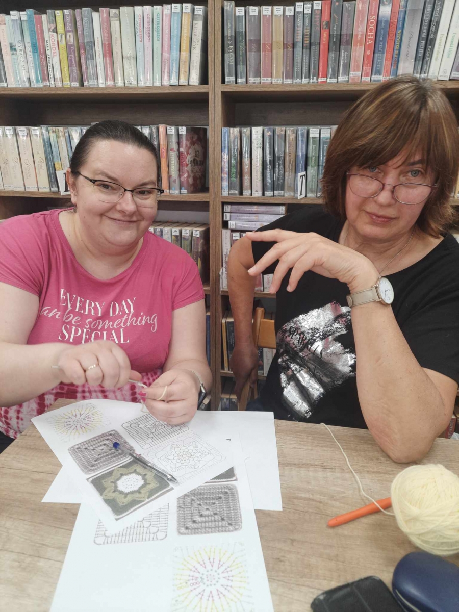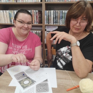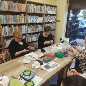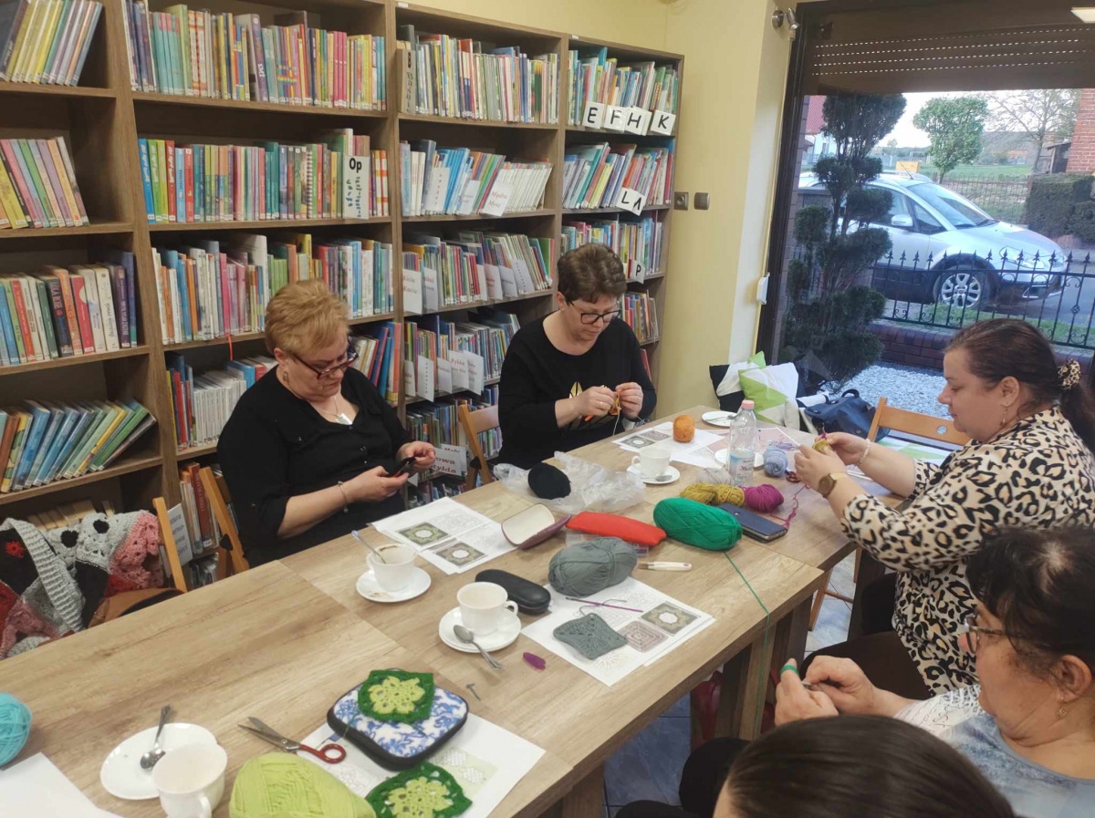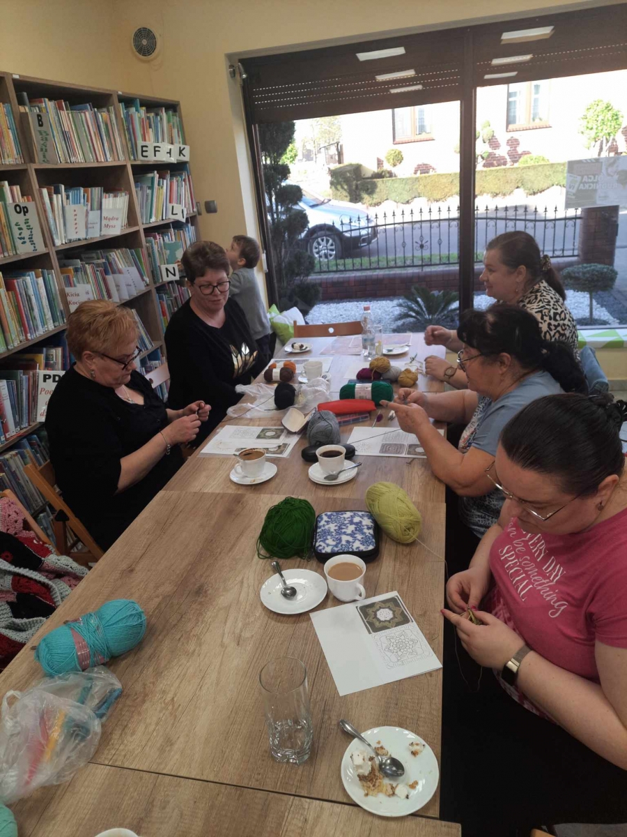 W czwartkowe popołudnie 11 kwietnia w Filii Bibliotecznej w Smolicach, jak co miesiąc spotkały się miłośniczki rękodzieła. Panie obecne na warsztatach, pod czujnym okiem Pani Violetty Pilujskiej (miłośniczki szydełka oraz wiernej uczestniczki naszych spotkań) dziergały kwadraty babuni, z których powstanie torba. Pasjonatki szydełkowania z zapałem robiły słupki, półsłupki i oczka łańcuszka tworząc kolorowe elementy. Nie obyło się bez prucia części robótki, by efekt pracy były zadowalający. Przy kawie i pysznym cieście, w miłym towarzystwie oraz rozmowach z dużą dozą humoru, to czwartkowe spotkanie upłynęło bardzo szybko.