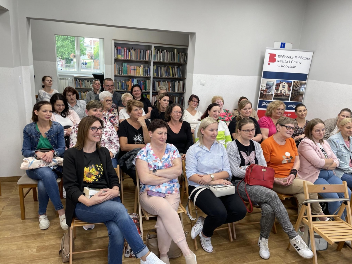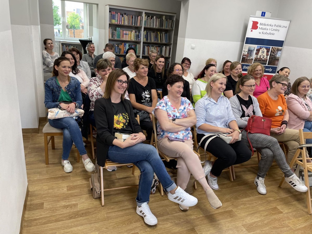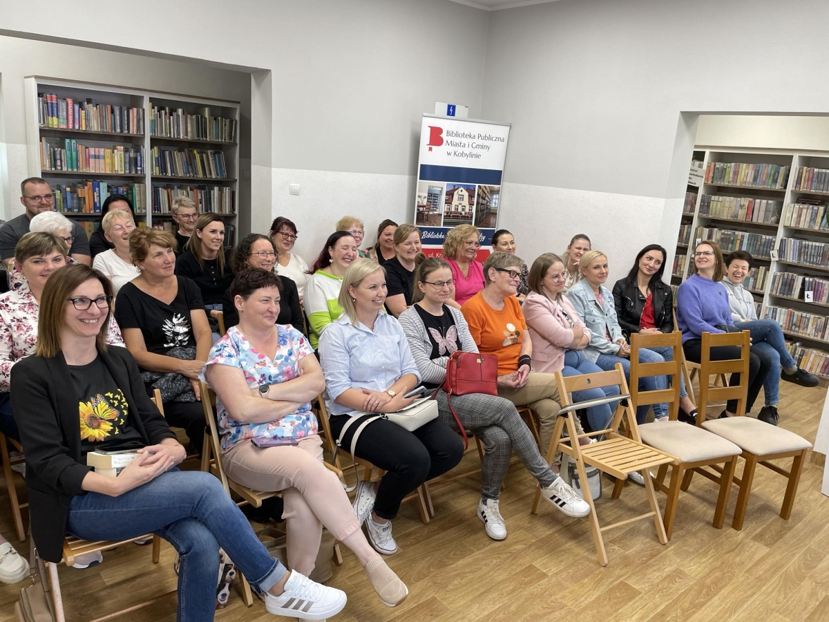 Pisarka przyciągnęła w mury naszej książnicy sporo czytelników. Panie i panowie przyjechali nawet z miejscowości oddalonych o kilkadziesiąt kilometrów od Kobylina. Było warto ! Spotkanie obfitowało w dużą dawkę humoru. Autorka powieści obyczajowych zdradziła wiele ciekawostek ze swojego życia. Poznaliśmy także losy jej rodziny. Okazało się, że będzie to wspaniały materiał na jedną z kolejnych książek. Rozmawialiśmy o losach bohaterów powieści. Oczywiście nie mogło zabraknąć pytań o styl pracy i pomysły na tematykę opisywanych historii. Autorka zdradziła też najbliższe plany wydawnicze.