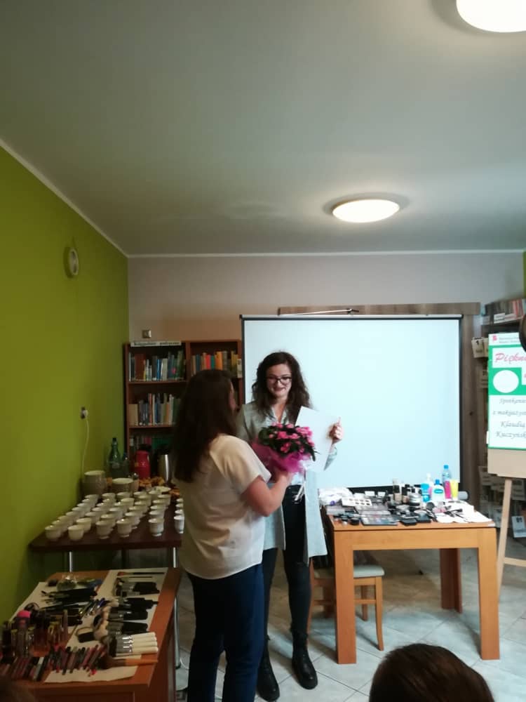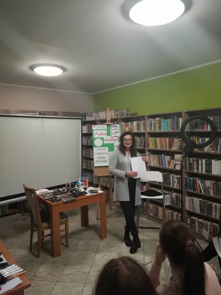 Filia Biblioteczna w Smolicach zorganizowała kolejne spotkanie z cyklu „Piękna każdego dnia’’, które odbyło się 6 października 2017 roku. Tym razem gościem była makijażystka Klaudia Kuczyńska. Jest ona absolwentką Szkoły Wizażu Beaty Małachowskiej oraz właścicielką Mobilnego Studia Wizażu i Stylizacji Hollywood Glam.