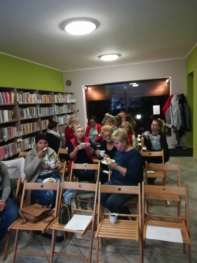 Na zakończenie wieczoru na wszystkich czekał słodki poczęstunek. Przy kawie i cieście kursantki wymieniały się swoimi uwagami i spostrzeżeniami. Zorganizowane spotkanie upłynęło w miłej i przyjaznej atmosferze, a zgromadzone Panie choć na chwilkę mogły „oderwać” się od codzienności i miło spędzić wolny czas.