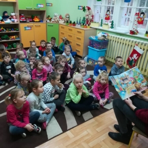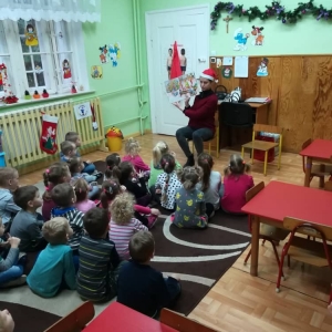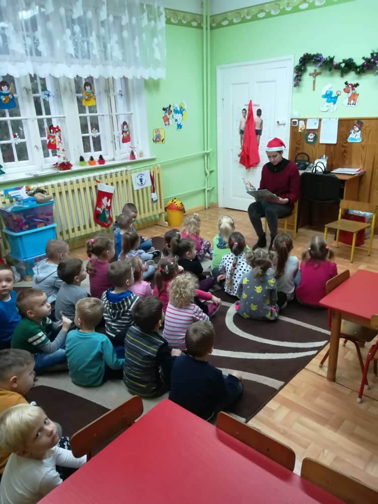 Z tej okazji kobylińskie bibliotekarki Anna i Katarzyna Bella odczytały bajkę „Najpiękniejsze Święta”, która wprowadziła najmłodszych w magiczny czas świąt. Następnie miały miejsce wspólne rozmowy o Mikołaju i tradycji Świąt Bożego Narodzenia.
