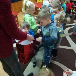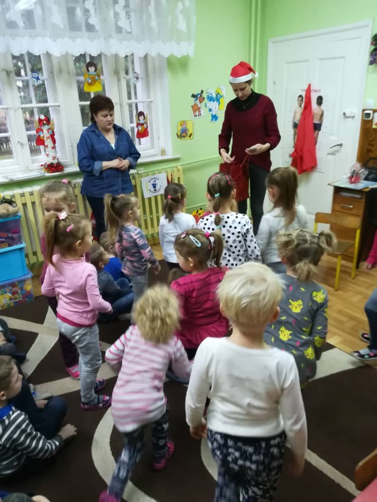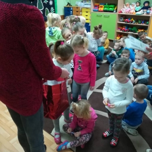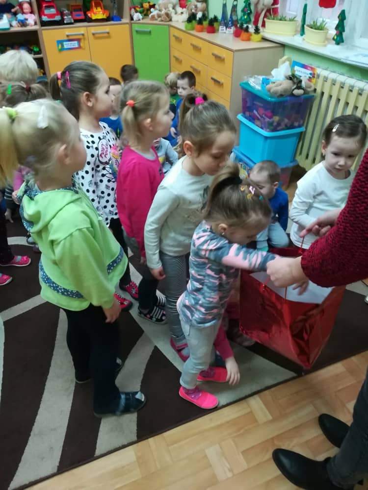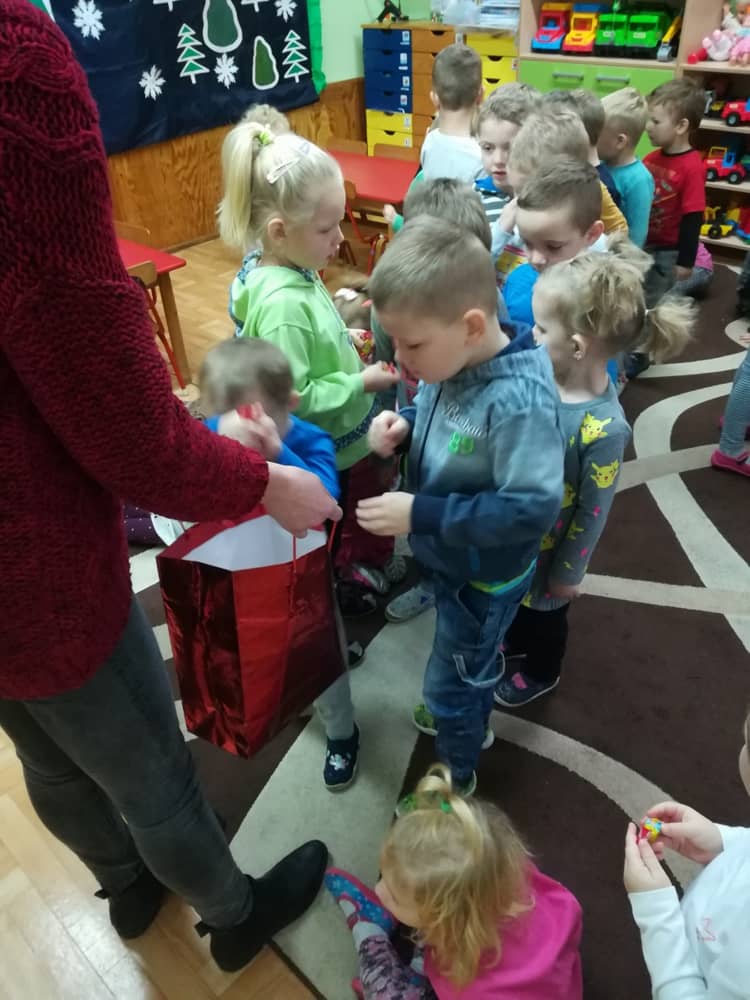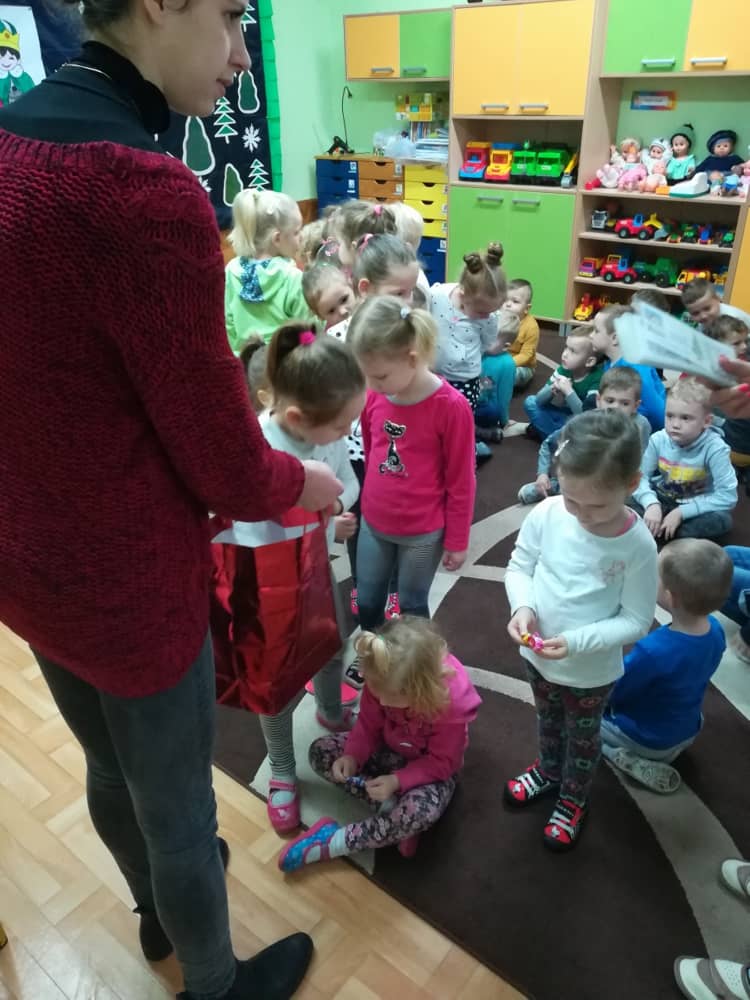 Pod koniec spotkania mikołajkowego dzieci chórem wyrecytowały wiersz o Świętym Mikołaju. Upominkiem kończącym spotkanie były cukierki oraz zakładki do książek dla przedszkolaków.