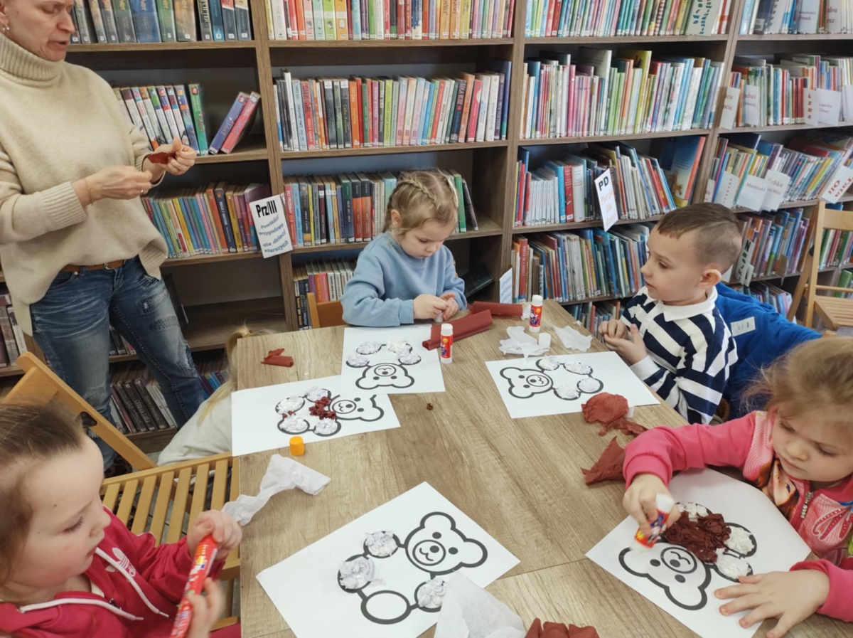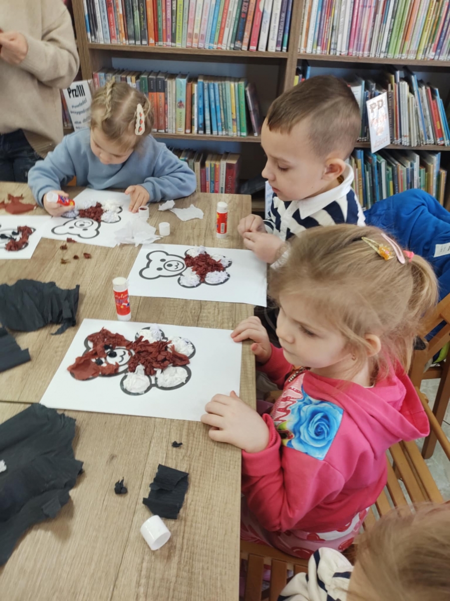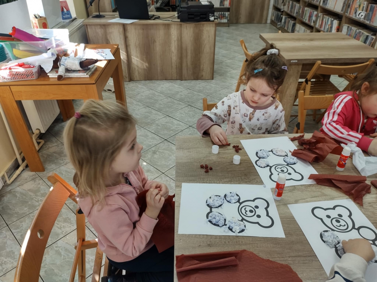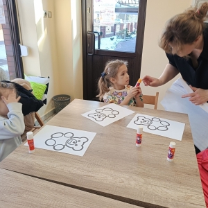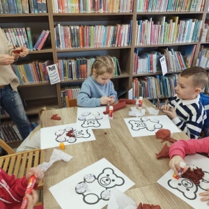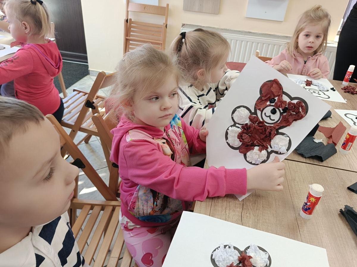 Największym zainteresowaniem wśród najmłodszych cieszyła się maskotka Misia Uszatka. Na zakończenie dzieci wykonały obrazki z bibuły przedstawiające bohatera spotkania.