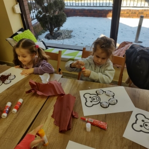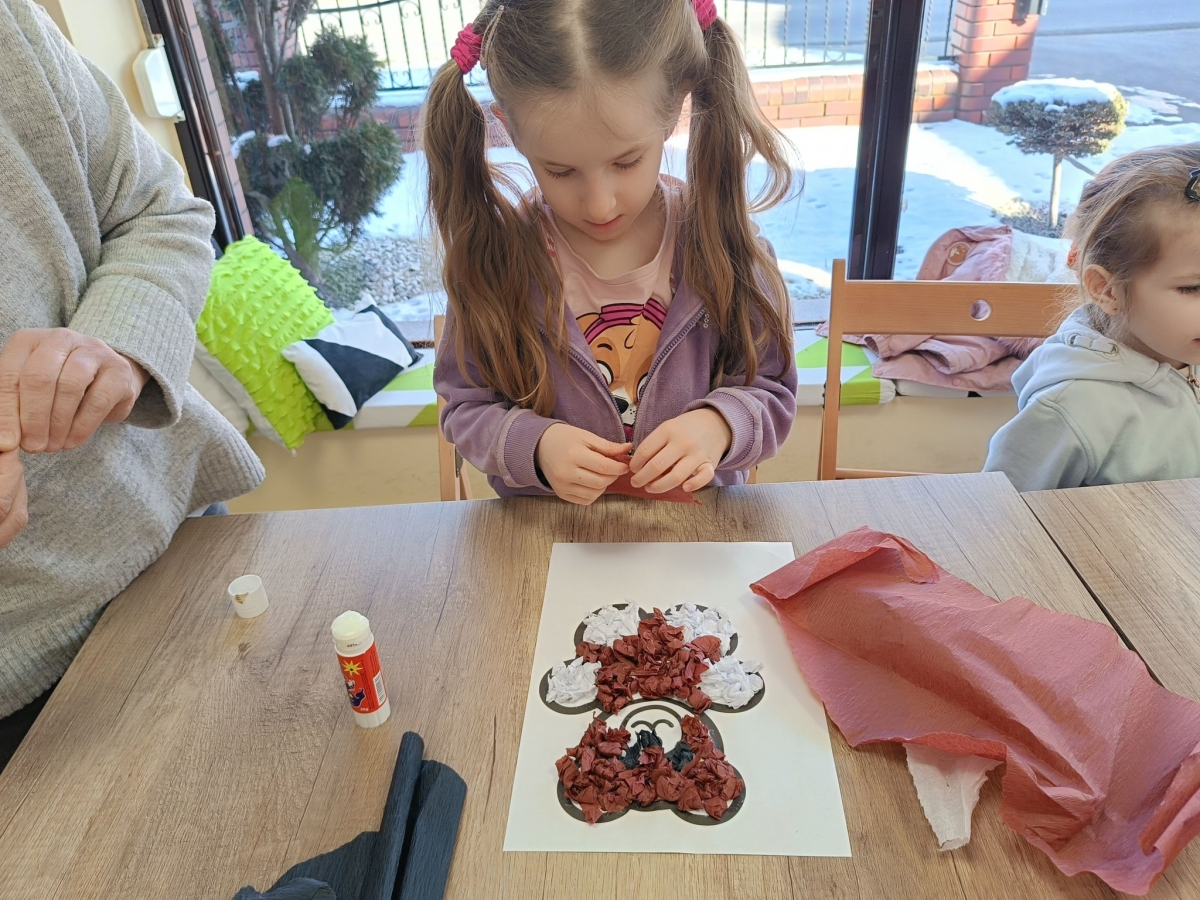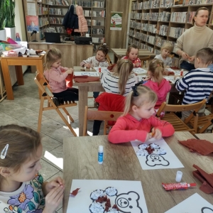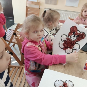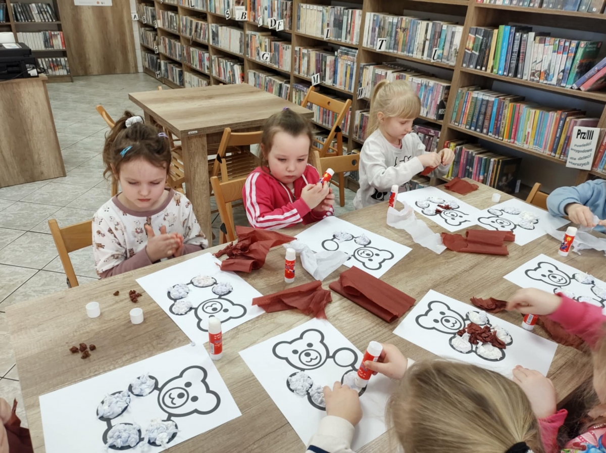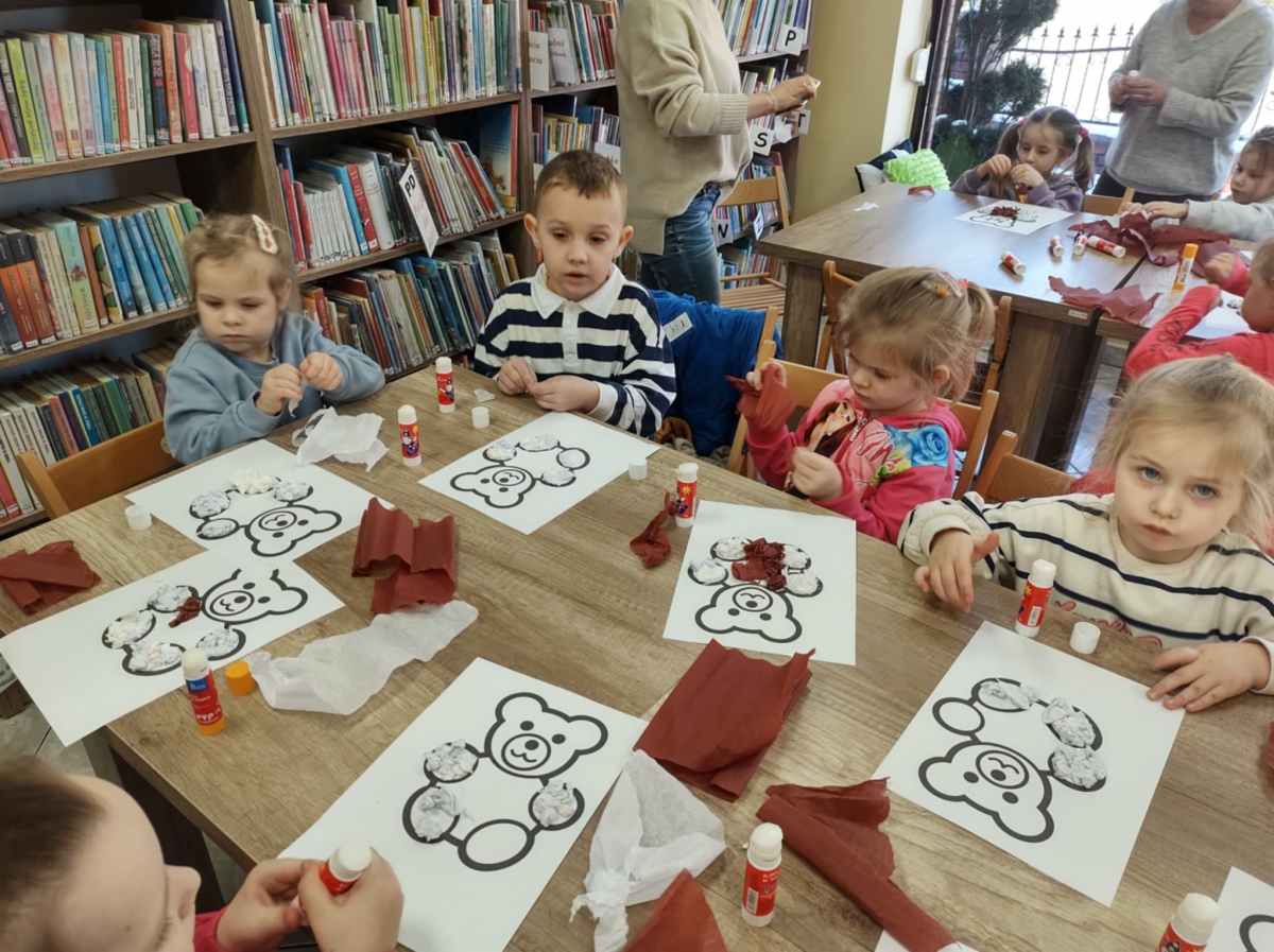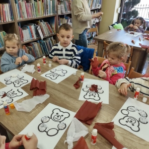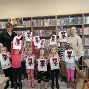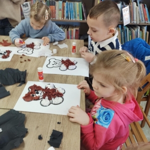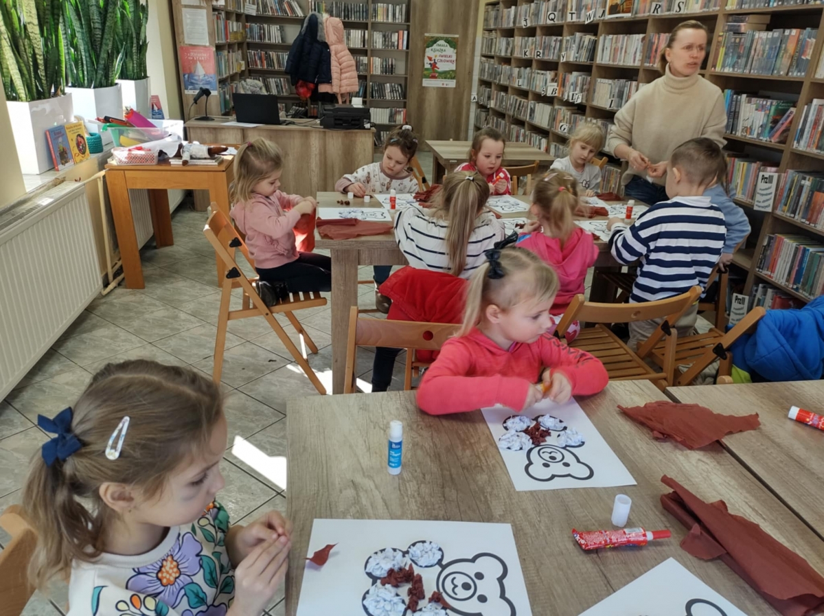 Największym zainteresowaniem wśród najmłodszych cieszyła się maskotka Misia Uszatka. Na zakończenie dzieci wykonały obrazki z bibuły przedstawiające bohatera spotkania.
