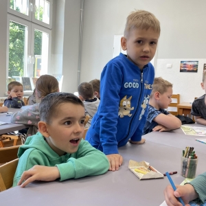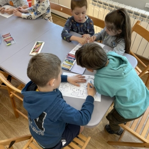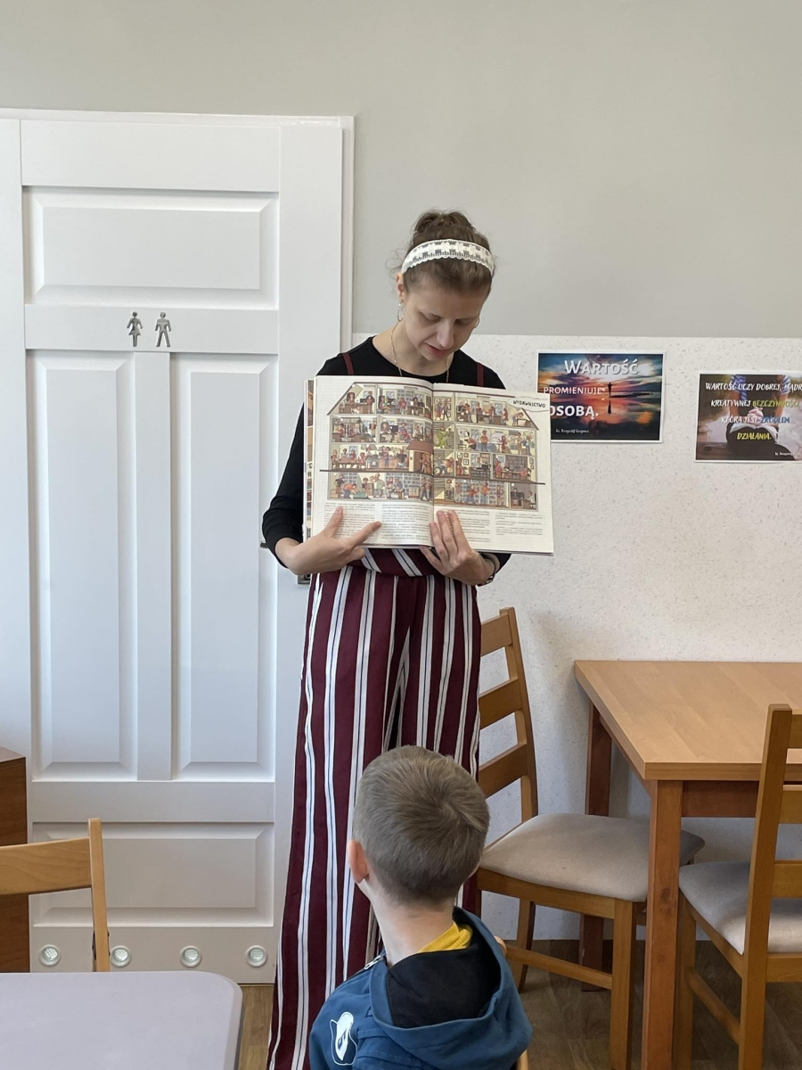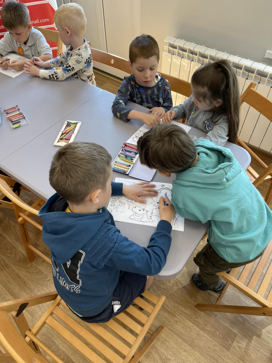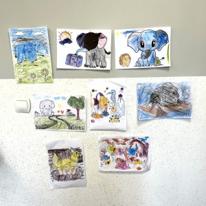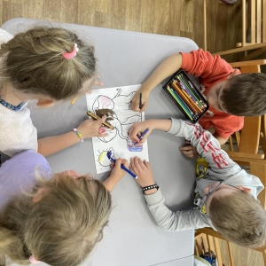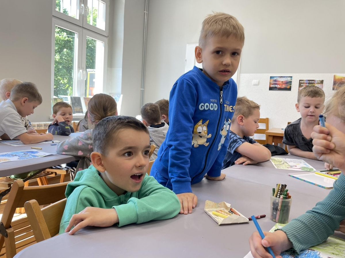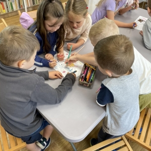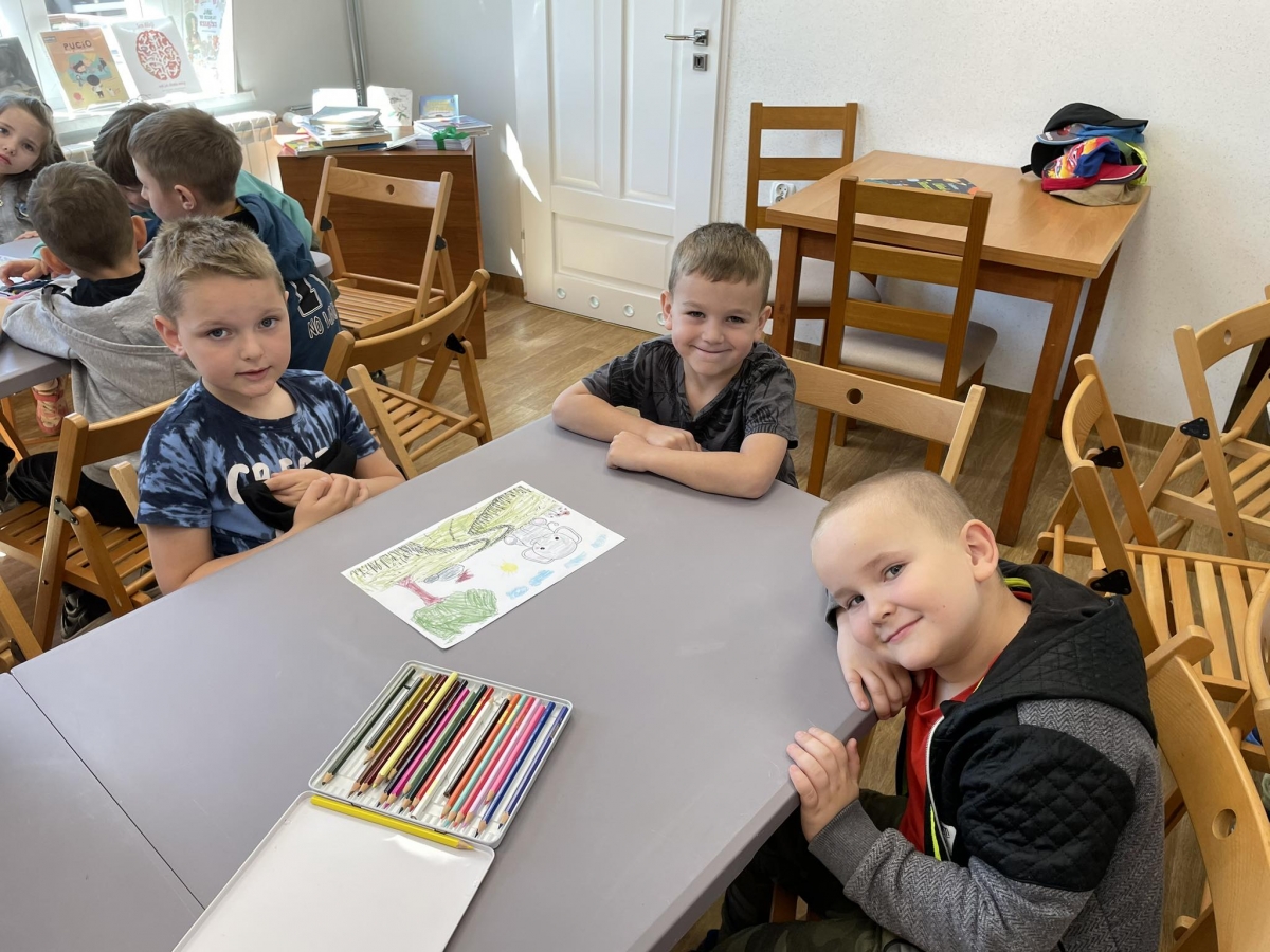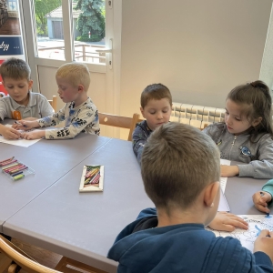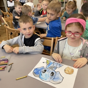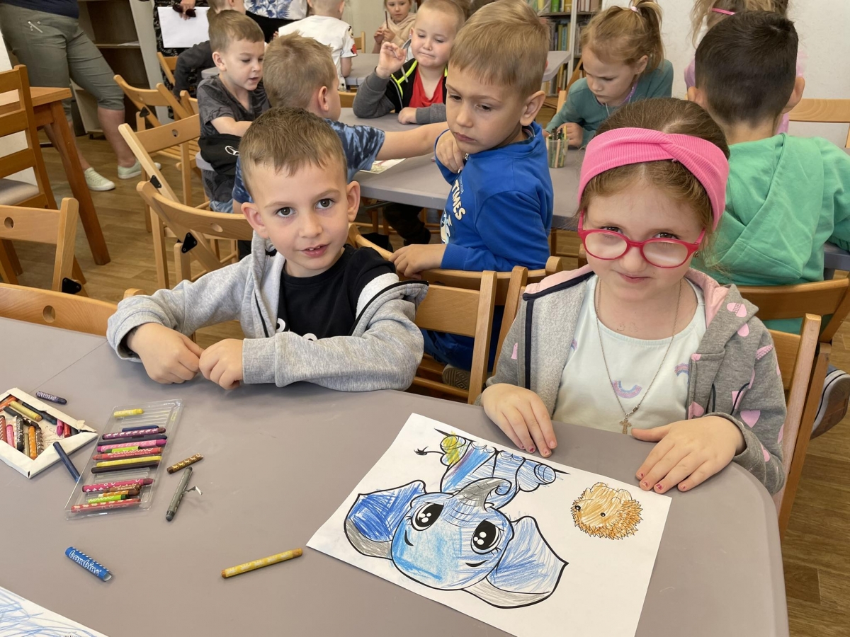 Aby przybliżyć dzieciom zawód ilustratora książek, przedszkolacy mieli za zadanie wysłuchać krótkiego opowiadania o słoniu Dominiku, a następnie przypasować przygotowane już rysunki do następujących po sobie części tekstu. Gdy to wykonali, nadawali kolor ilustracjom, poprzez ich rysowanie.