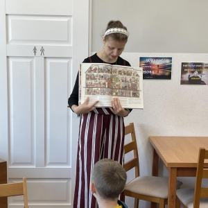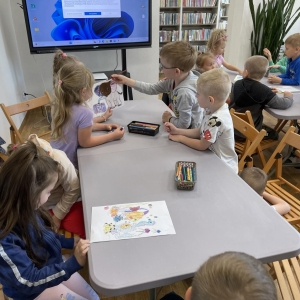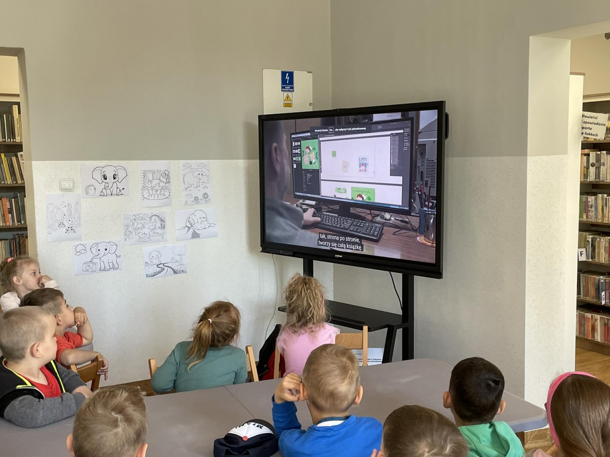 Rozmawialiśmy o książkach – o tym kto je pisze, ilustruje oraz wydaje. Aby mieć pełniejszy obraz, najmłodsi obejrzeli krótki filmik, prezentujący pokrótce proces powstawania książki.