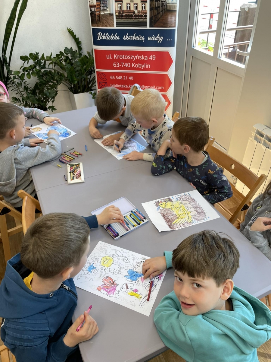 Na zakończenie spotkania najmłodsi otrzymali wzory zakładek do książek do własnego ozdobienia, a także oficjalne zaproszenia do odwiedzin kobylińskiej Biblioteki Publicznej wraz z rodzicami. Zaproszenia rozdawane są w ramach ogólnopolskiej akcji ,,Mała Książka Wielki Człowiek” w ramach której przedszkolakom wręczane są darmowe egzemplarze książek.