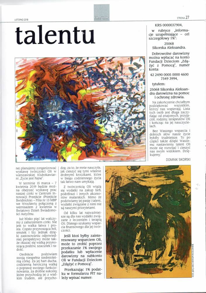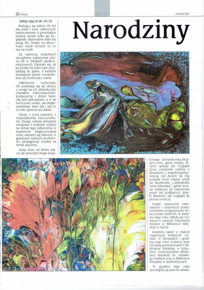 Zachęcamy do zapoznania się z artykułem na temat twórczości Aleksandry Anny Sikorskiej, który ukazał się w miesięczniku „Filantrop Naszych Czasów” ...