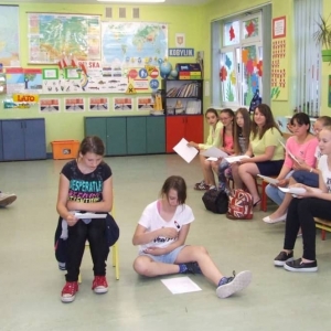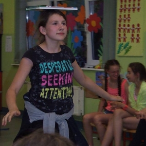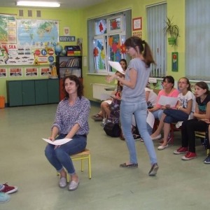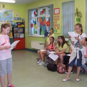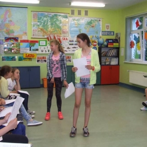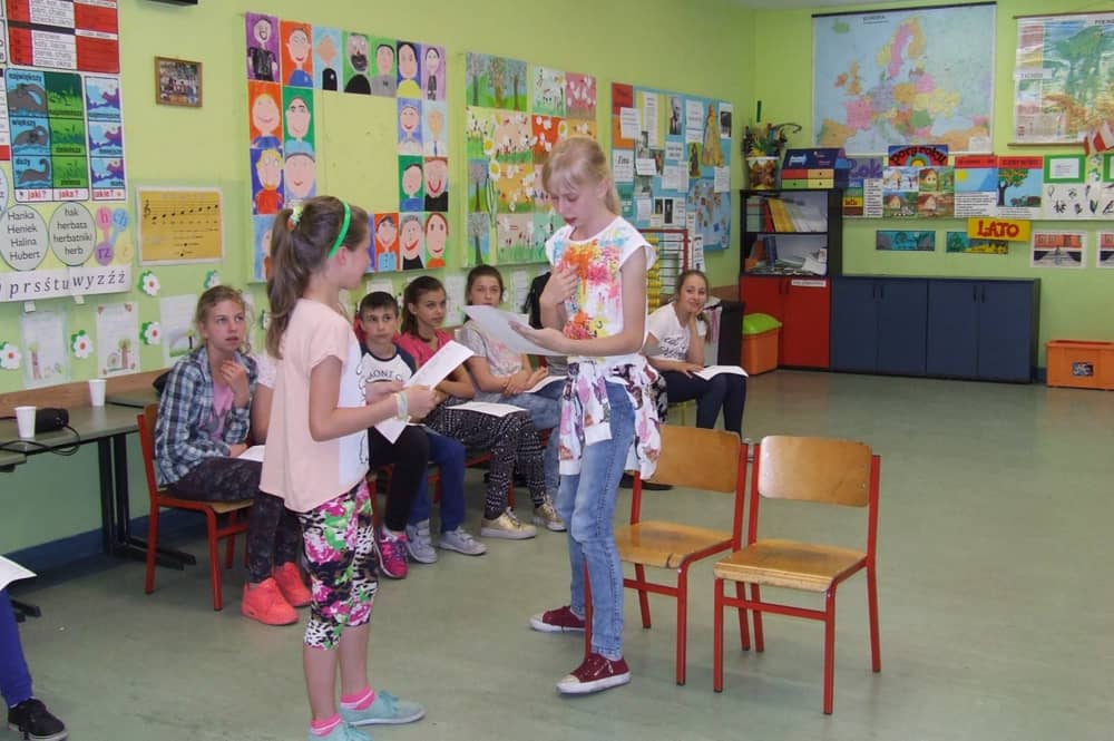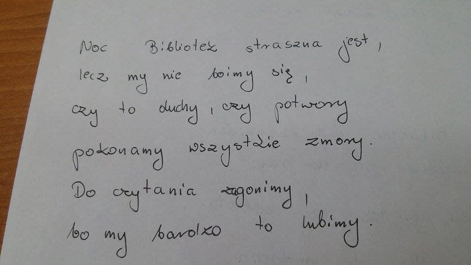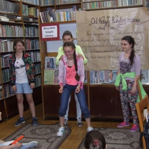 Kolejnym punktem ,,Nocy bibliotek” był konkurs recytatorski z podziałem na role. Wszyscy uczestnicy zostali podzieleni na grupy i… zaczęła się rywalizacja. Pomysłowość dzieci co do inscenizacji wierszy była pozytywnie zaskakująca. Odkryliśmy dobrze zapowiadające się przyszłe gwiazdy teatralne, jednak to najmłodsi jurorzy wyłonili zwycięzców. Oto oni: