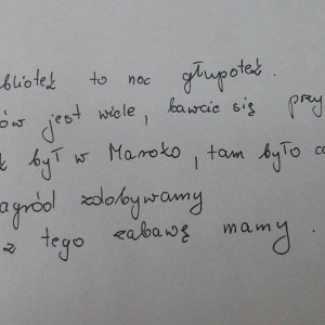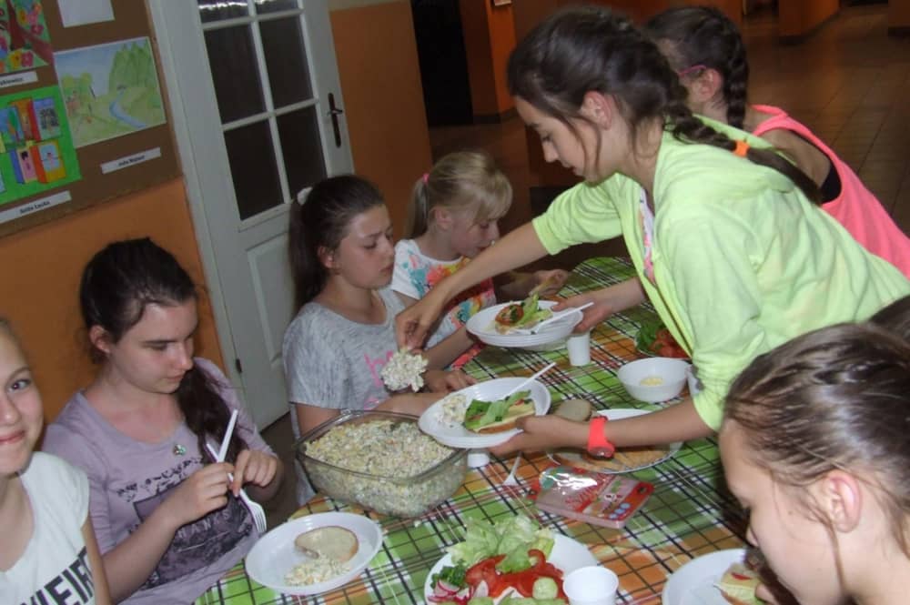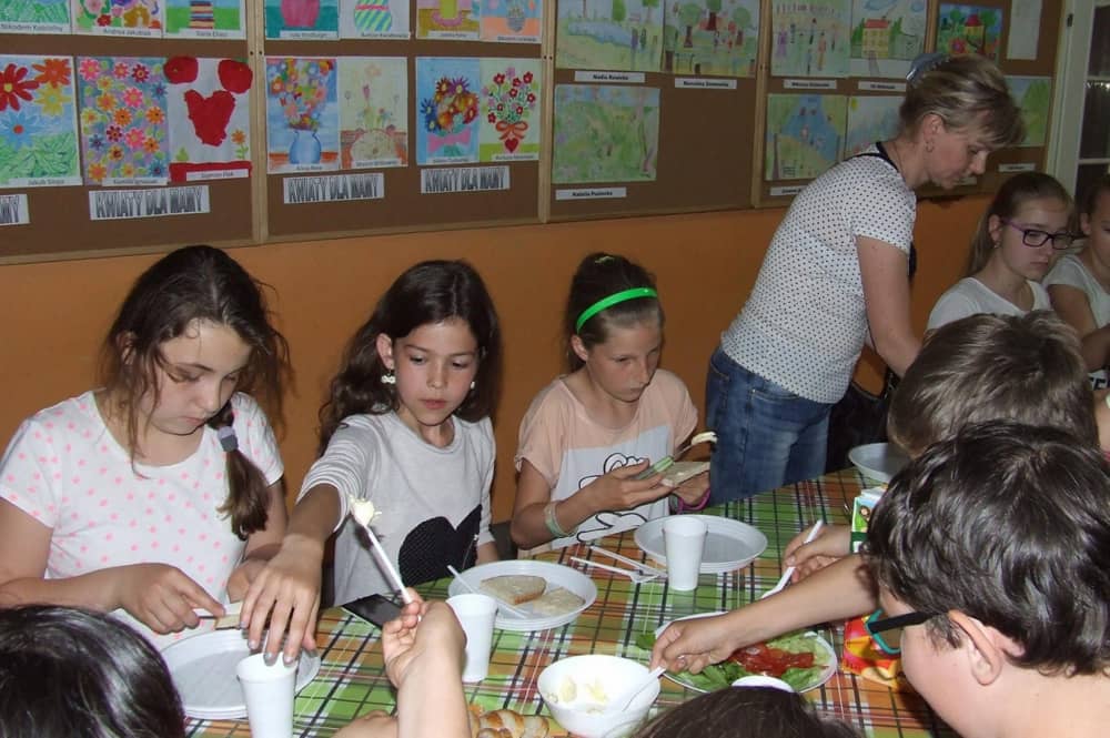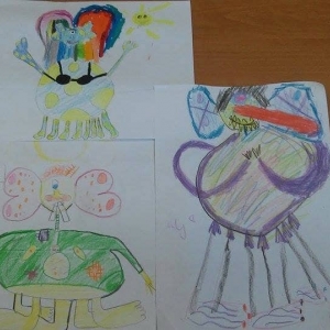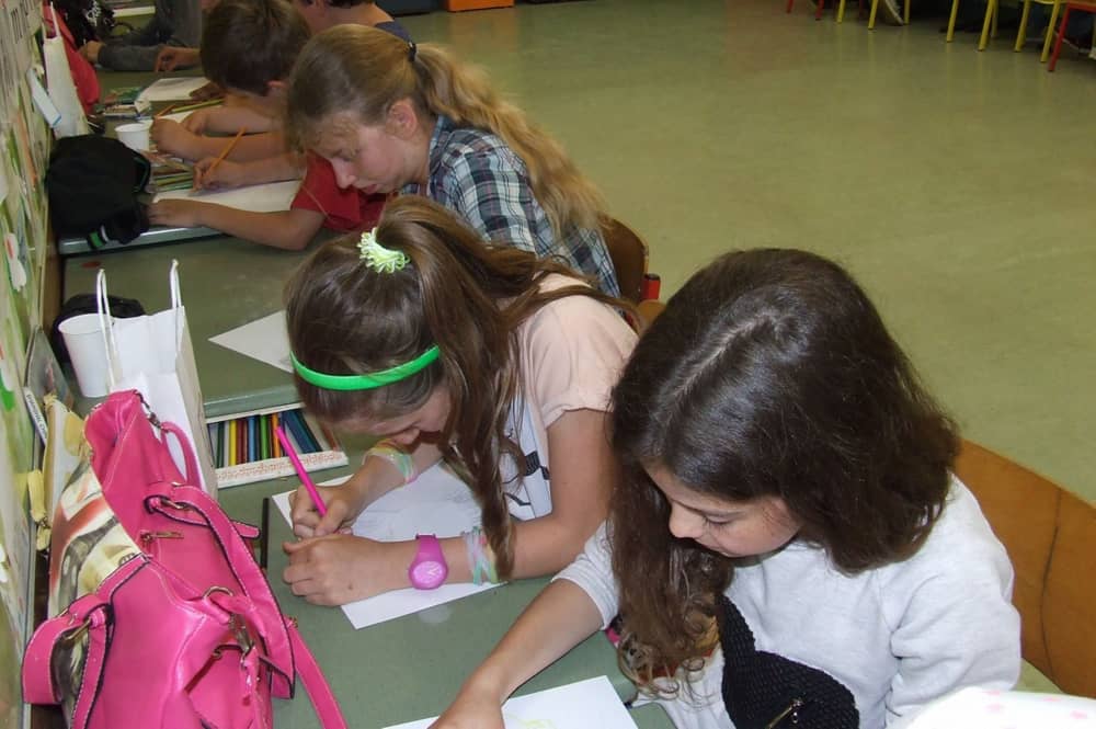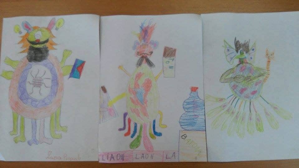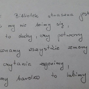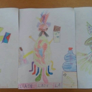 Kiedy wszystkie brzuchy zostały napełnione, odbył się kolejny konkurs, tym razem plastyczny. Dzieci miały za zadanie wysłuchać krótkiej charakterystyki potwora, a następnie narysować go. Oczywiście opis nie był kompletny i dzieci musiały dodać do rysunku coś od siebie. Za najbardziej kreatywne prace również były nagrody, a zwycięskie prace publikujemy w galerii zdjęć z ,,Nocy bibliotek”.