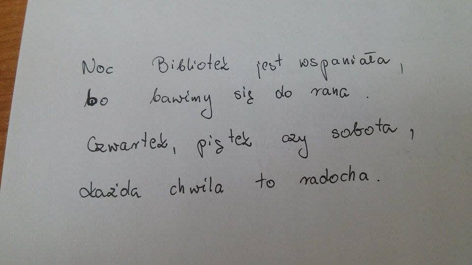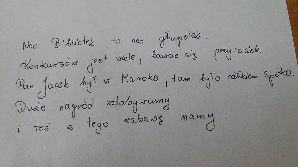 Serdecznie dziękujemy Panu Jackowi Łazarskiemu i Pani Ewelinie Niedobitek za spotkanie i poświęcony nam czas oraz wszystkim osobom, które włączyły się w organizację ,,Nocy Bibliotek”. DZIĘKUJEMY !!!!