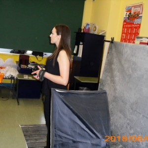 Tegoroczną Noc Bibliotek rozpoczęliśmy od spotkania z absolwentką kobylińskiej szkoły – Weroniką Kazubek, która jest pasjonatką fotografii. Wykorzystując profesjonalny sprzęt każdy z nas stał się modelem i uczestniczył w warsztatach kreatywności i kursie fotografowania.