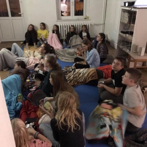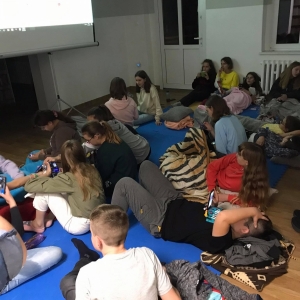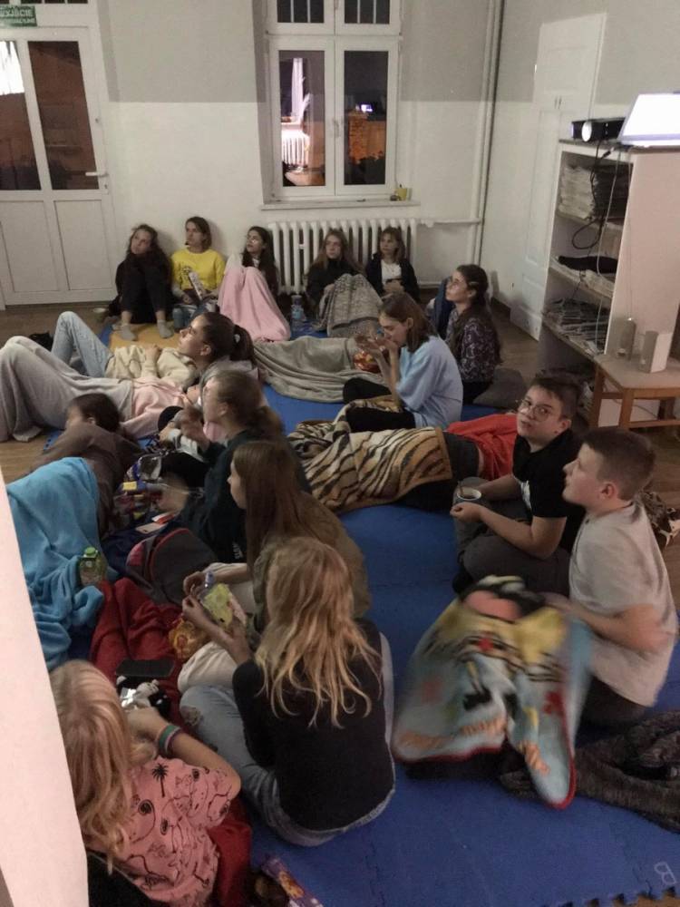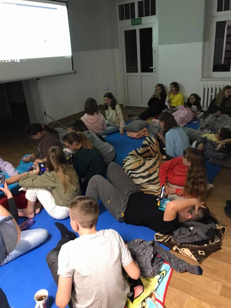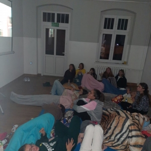 Czytanie wzmacnia… duszę. Ostatnim punktem naszej imprezy był seans filmowy. Organizatorzy Nocy Bibliotek udostępnili młodzieży film. Przy wspólnym seansie Noc Bibliotek powoli dobiegła końca.