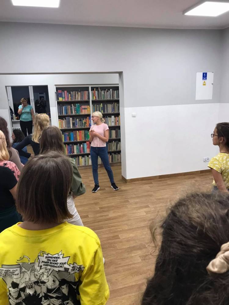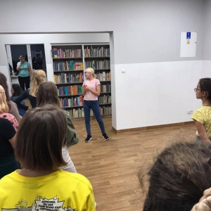 Kolejnym punktem Nocy Bibliotek było wzmacnianie ciała w bibliotece. W mury książnicy zawitała Monika Foltynowicz, kobylinianka, która z wykształcenia jest pedagogiem, z zamiłowania instruktorem tańca.