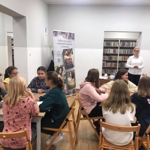 Nasza Biblioteka wzięła udział w 7. Ogólnopolskiej Akcji Noc Bibliotek. Impreza odbyła się 8 października 2021 r. pod hasłem „Czytanie wzmacnia”. Uczestnikami była młodzież w wieku 12-15 lat.