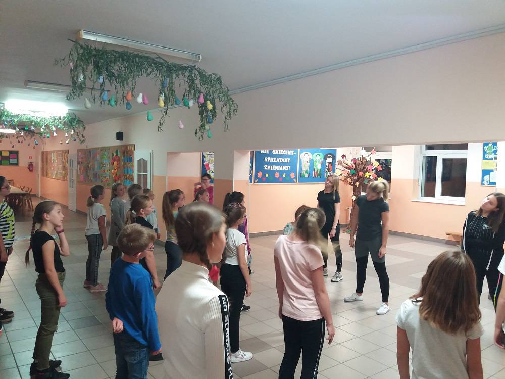 Tegoroczną Noc Bibliotek rozpoczęliśmy od spotkania z muzyką i tańcem. Grupa Mimika Dance z Pogorzeli, przeprowadziła zajęcia taneczne.