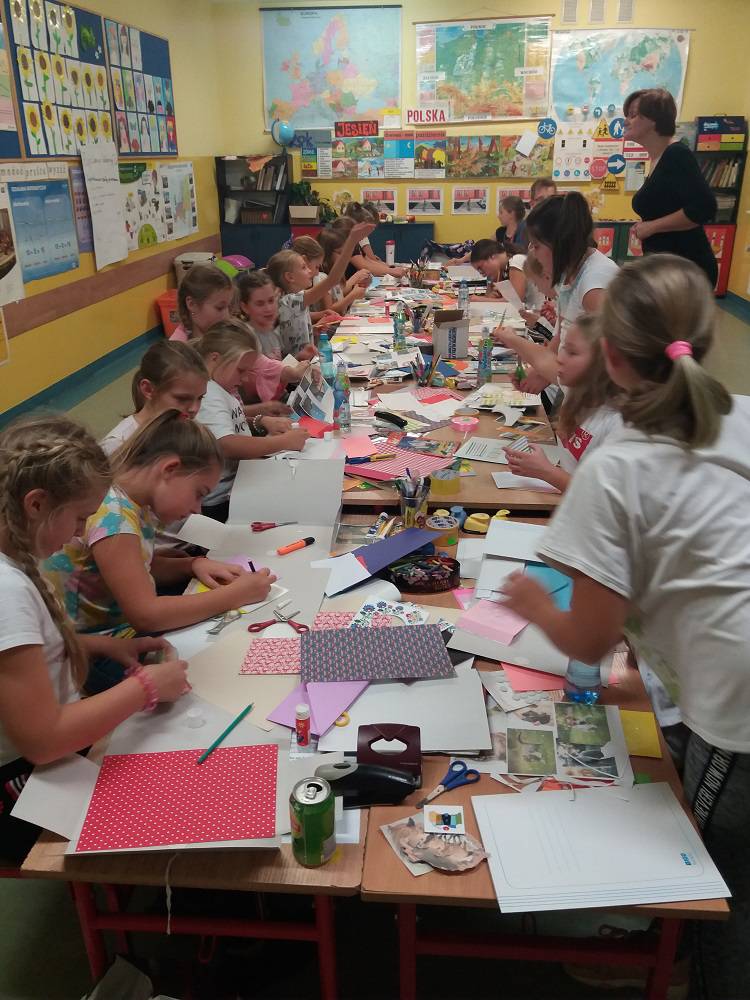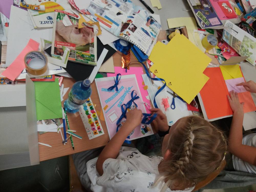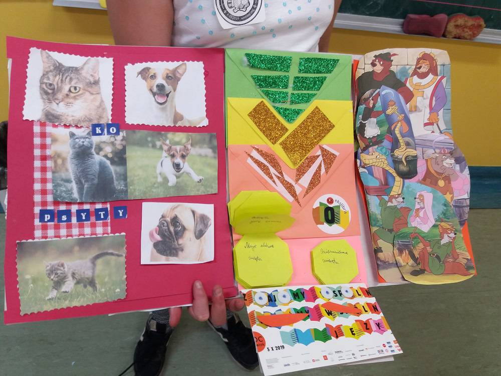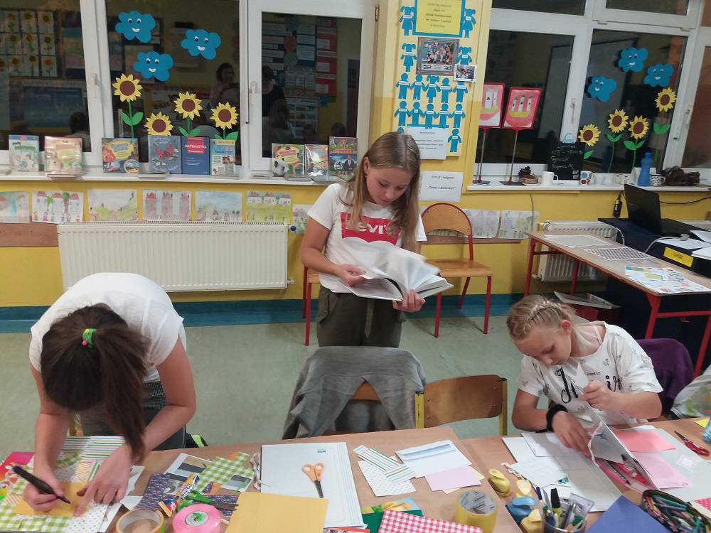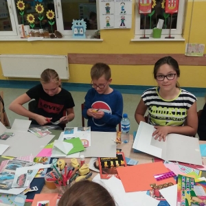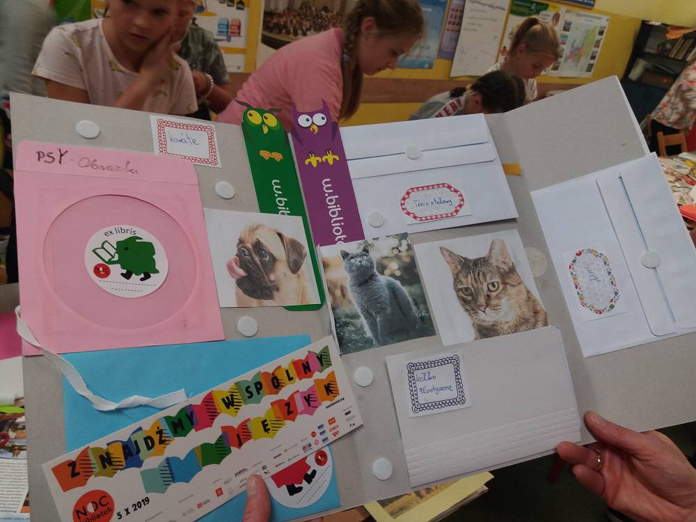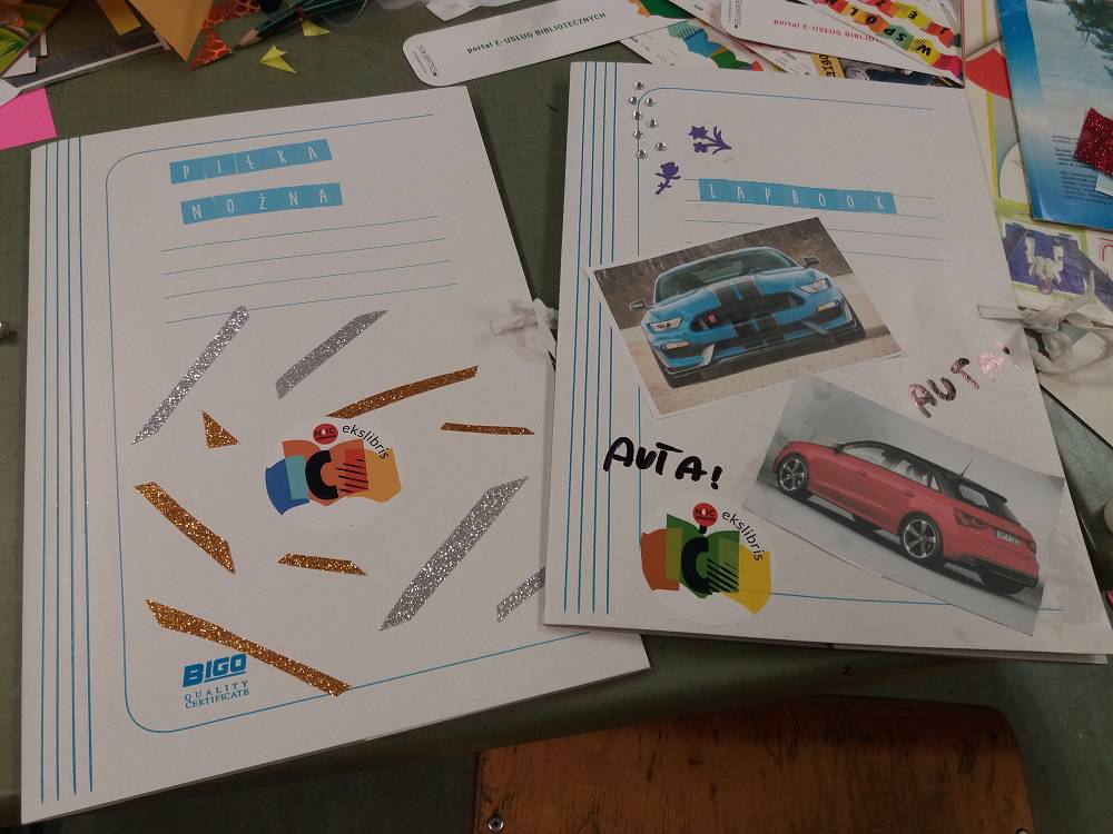 Rozgrzani i wygimnastykowani uczestnicy Nocy Bibliotek zasiedli do tworzenia lapbooków. Lapbooki to pewnego rodzaju teczki tematyczne, w których umieszczane są wiadomości na dany temat. Teczka pełni funkcję interaktywnej przestrzeni na rysunki, opowiadania, słówka, terminy, zdjęcia. Lapbooki są wykorzystywane coraz częściej do nauki w Polsce. Wśród uczestników, pomysłów na nowoczesne teczki tematyczne było co niemiara (rośliny, zwierzęta, przedmioty szkolne, a nawet miasto Kobylin).