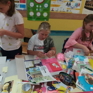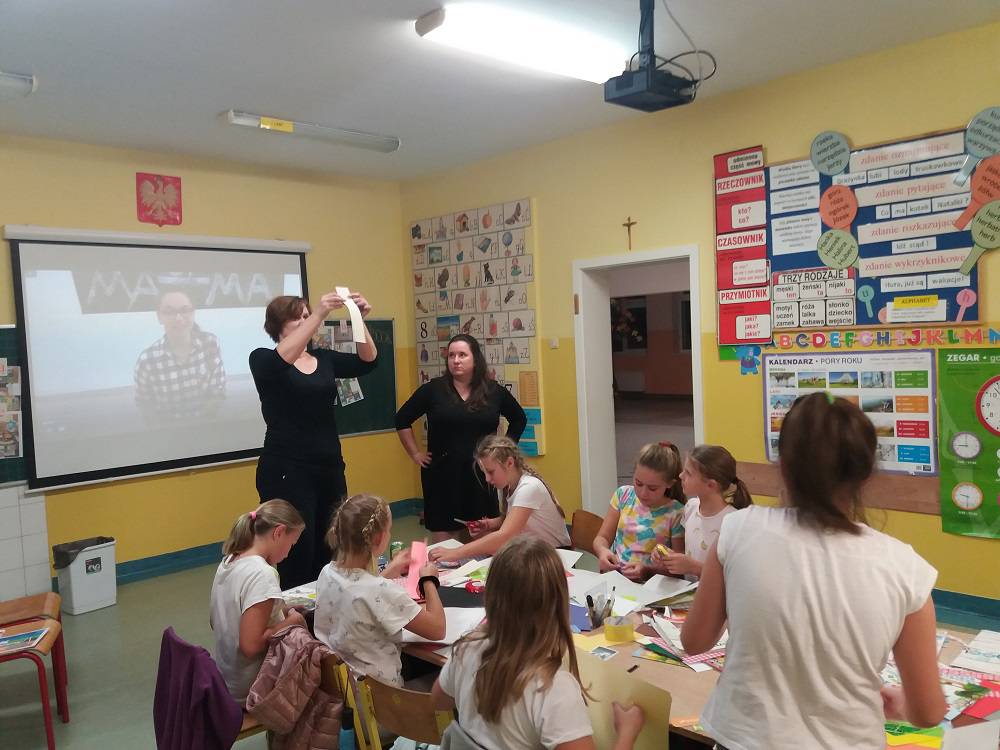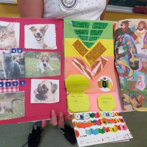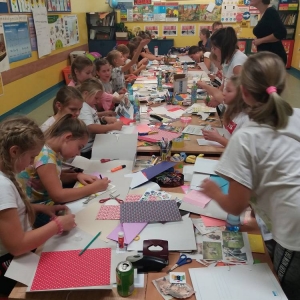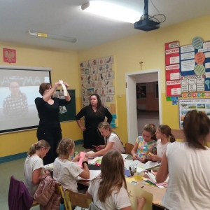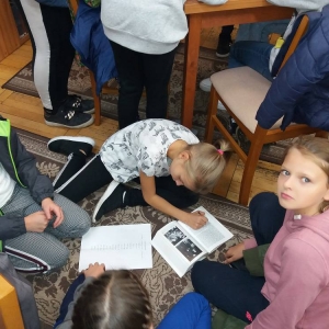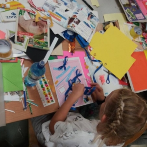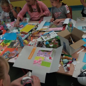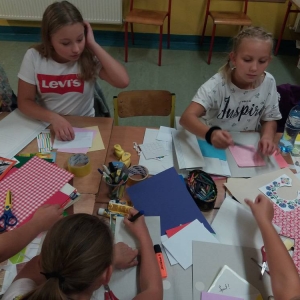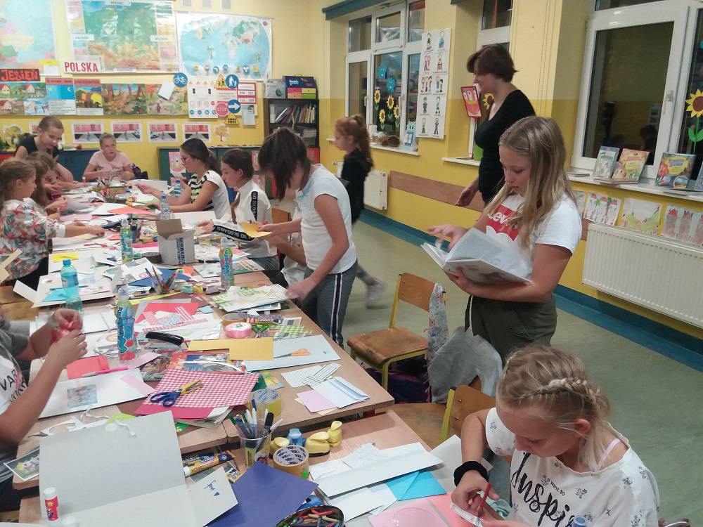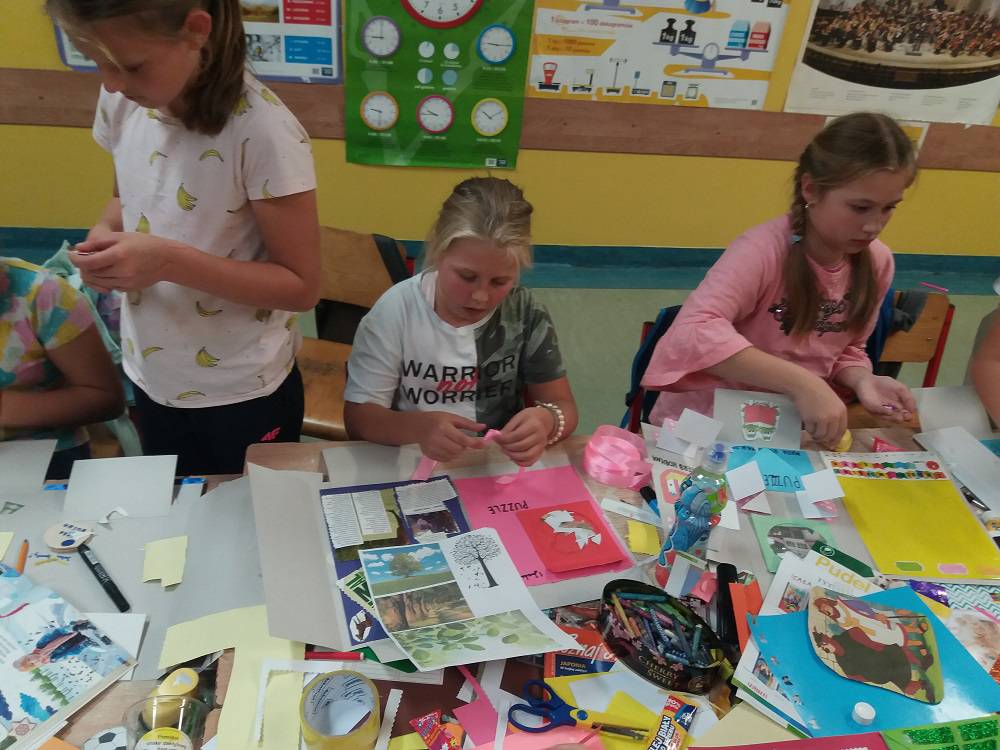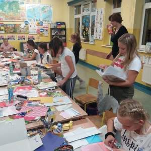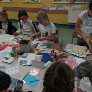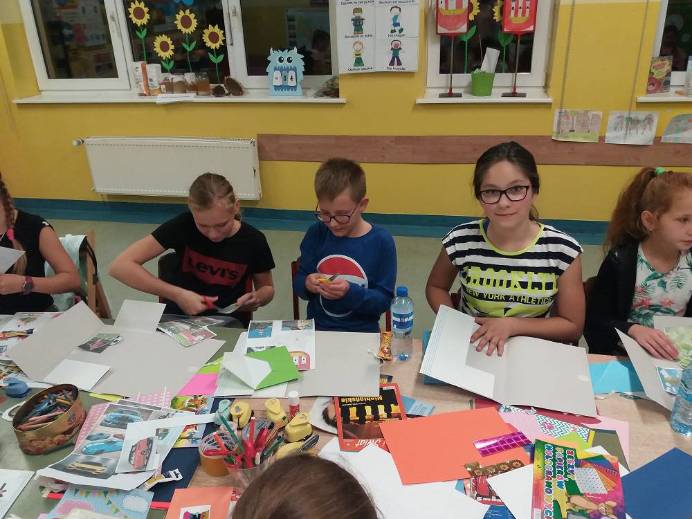 Rozgrzani i wygimnastykowani uczestnicy Nocy Bibliotek zasiedli do tworzenia lapbooków. Lapbooki to pewnego rodzaju teczki tematyczne, w których umieszczane są wiadomości na dany temat. Teczka pełni funkcję interaktywnej przestrzeni na rysunki, opowiadania, słówka, terminy, zdjęcia. Lapbooki są wykorzystywane coraz częściej do nauki w Polsce. Wśród uczestników, pomysłów na nowoczesne teczki tematyczne było co niemiara (rośliny, zwierzęta, przedmioty szkolne, a nawet miasto Kobylin).