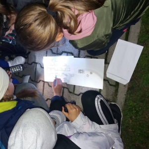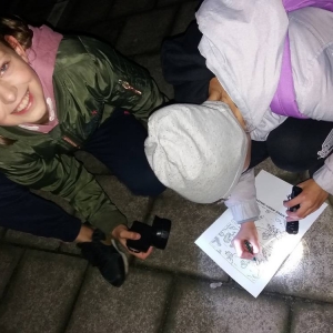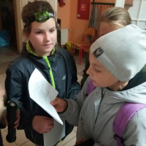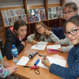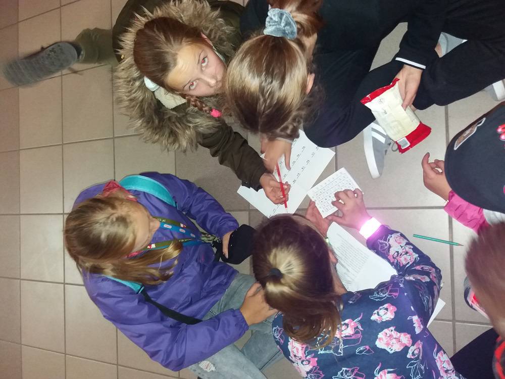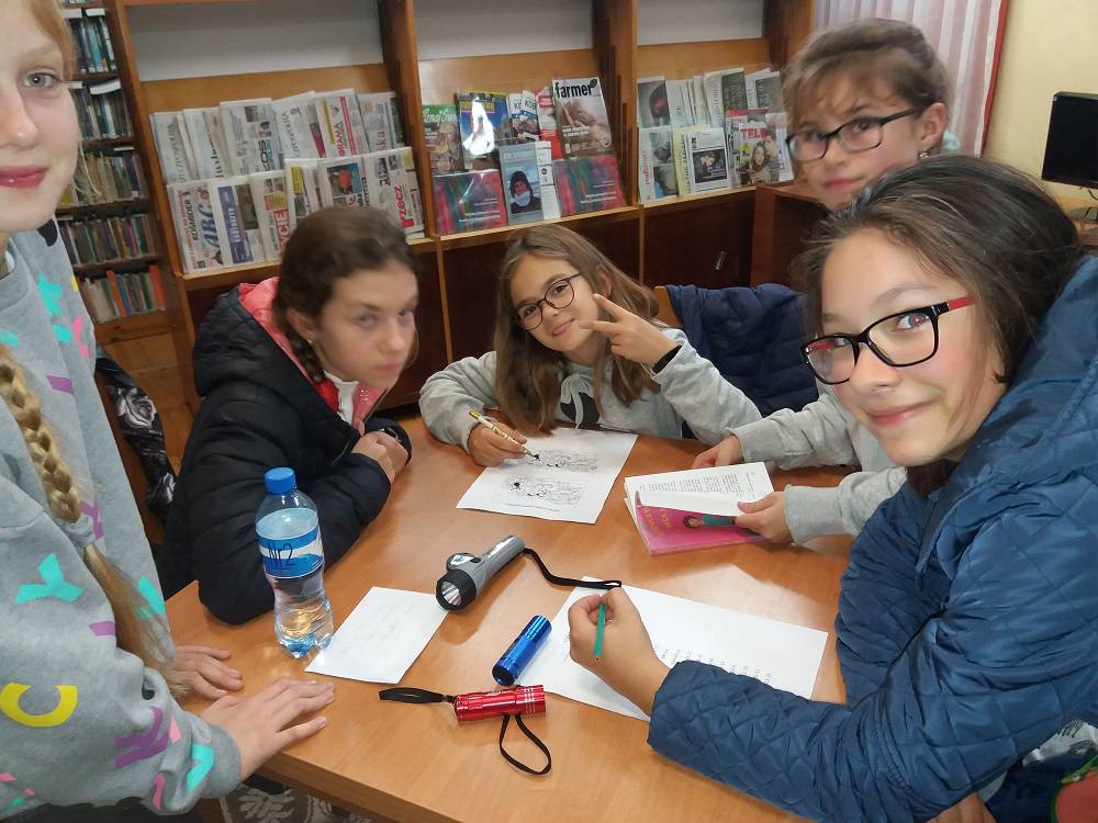 Kolejnym etapem Nocy Bibliotek był wyczekiwany przez wszystkich ,,Kryminalny wieczór”. Uczestnicy zostali podzieleni na grupy i stali się detektywami. Poszukiwali przedmiotów, które zaginęły kobylińskim bibliotekarkom. Przygodę rozpoczęli w szkole i wędrowali po Kobylinie. Udali się na boisko sportowe, na dworzec kolejowy. Zagadki doprowadziły ich do budynku Biblioteki Publicznej, a zakończyli detektywistyczną przygodę w Bibliotece Szkolnej. Poszukiwanymi przedmiotami okazały się ulubione książki bibliotekarek.