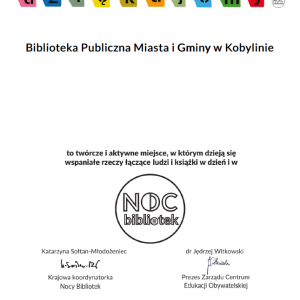 Pragniemy podzielić się podziękowaniem od organizatorów Nocy Bibliotek. Cieszymy się, że nasza praca jest dostrzegana jako twórcza. Dzięki Wam jesteśmy miejscem, gdzie tworzą się spotkania i łączą się ludzie.