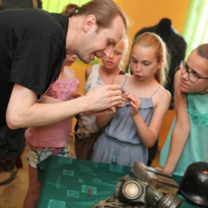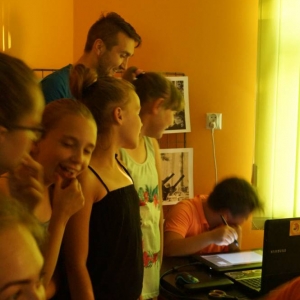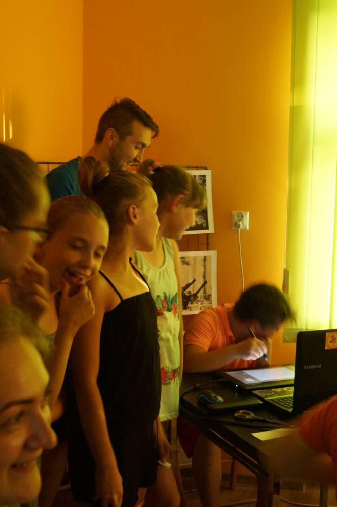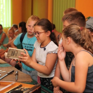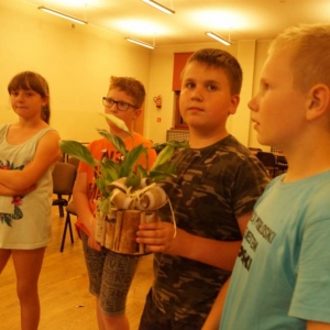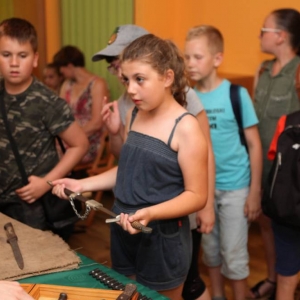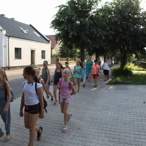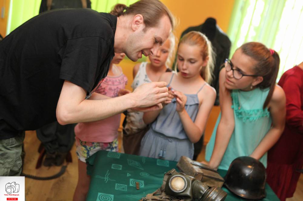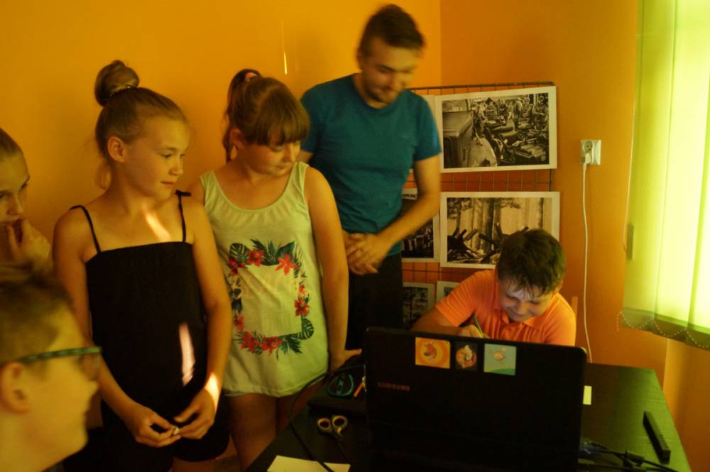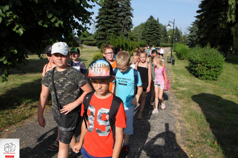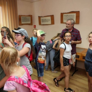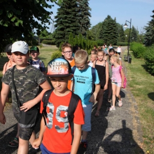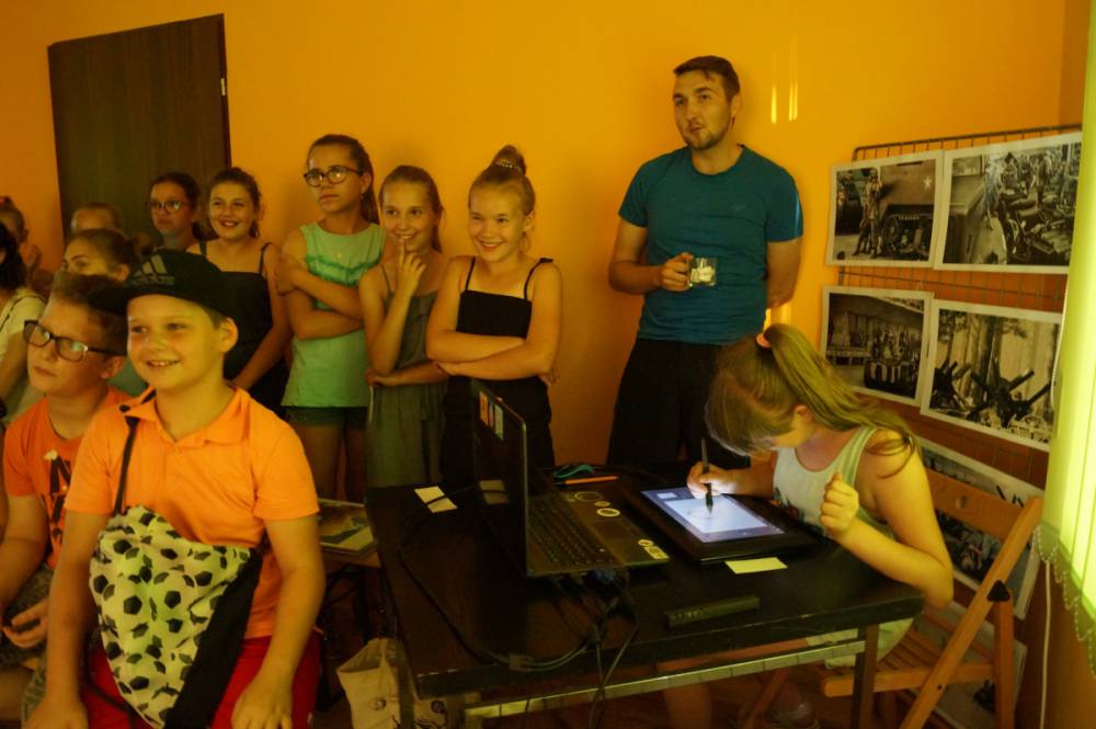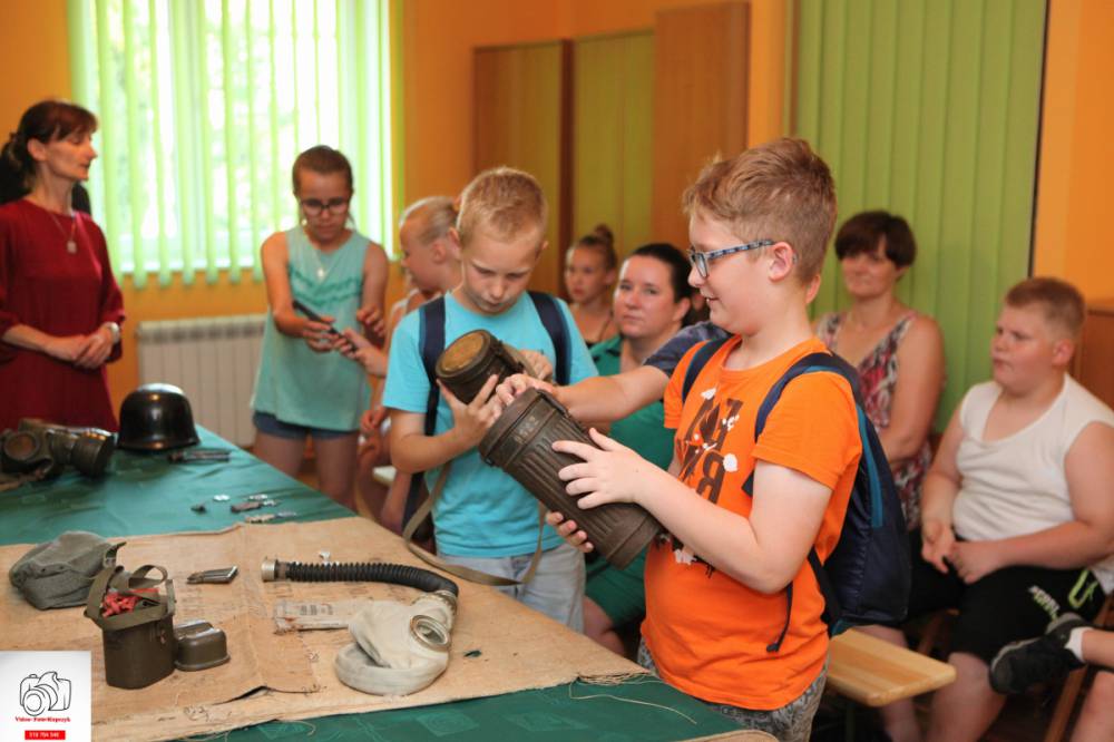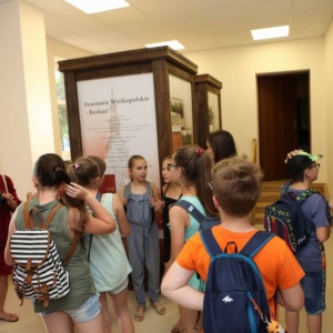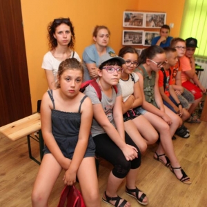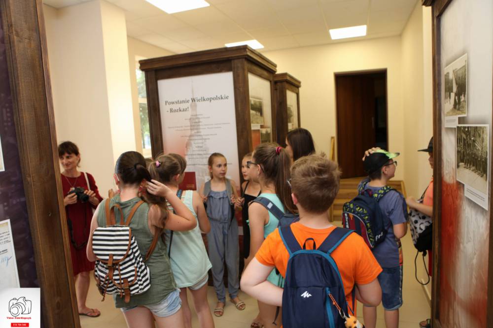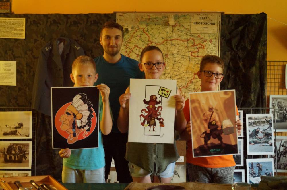 Spacerowym krokiem młodzież wraz z opiekunami poszła do Gminnego Ośrodka Kultury. Tam czekała już Dyrektor instytucji Karolina Szymanowska. Zachęciła wszystkich do obejrzenia wystawy pt. ,,Powstanie Wielkopolskie- rozkaz! Dokumenty Powstania Wielkopolskiego”. Następnie głos oddała Pawłowi Skalskiemu, kobyliniakowi, pasjonatowi historii. Dzięki jego podejściu do młodych ludzi, a także pokazaniu, że historię można odkrywać poprzez bezpośrednie obcowanie, dotykanie eksponatów wszyscy byli zachwyceni spotkaniem. Równie miłe spotkanie okazało się z Dawidem Malikiem, kobyliniakiem interesującym się grafiką komputerową. Najmłodsi mieli okazję choć przez chwilę stać się znawcami grafiki. Na pamiątkę otrzymali prace Dawida Malika.