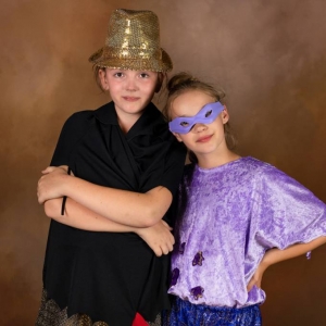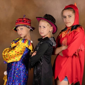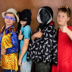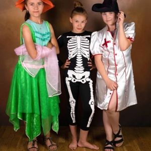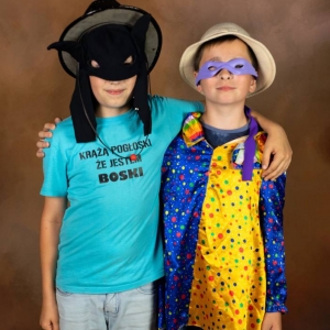 Gdy zapadał zmrok nad Kobylinem udaliśmy się do sali szkolnej, gdzie czekali rodzice z przygotowaną kolacją… oraz Wernika Kazubek z kolejną atrakcją. Młodzież przebierała się w kolorowe stroje i pozowała podczas profesjonalnej sesji fotograficznej. Zabawy było co nie miara.