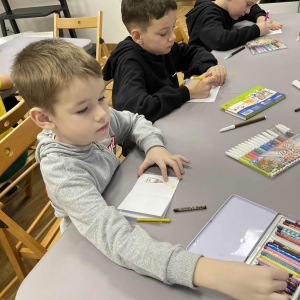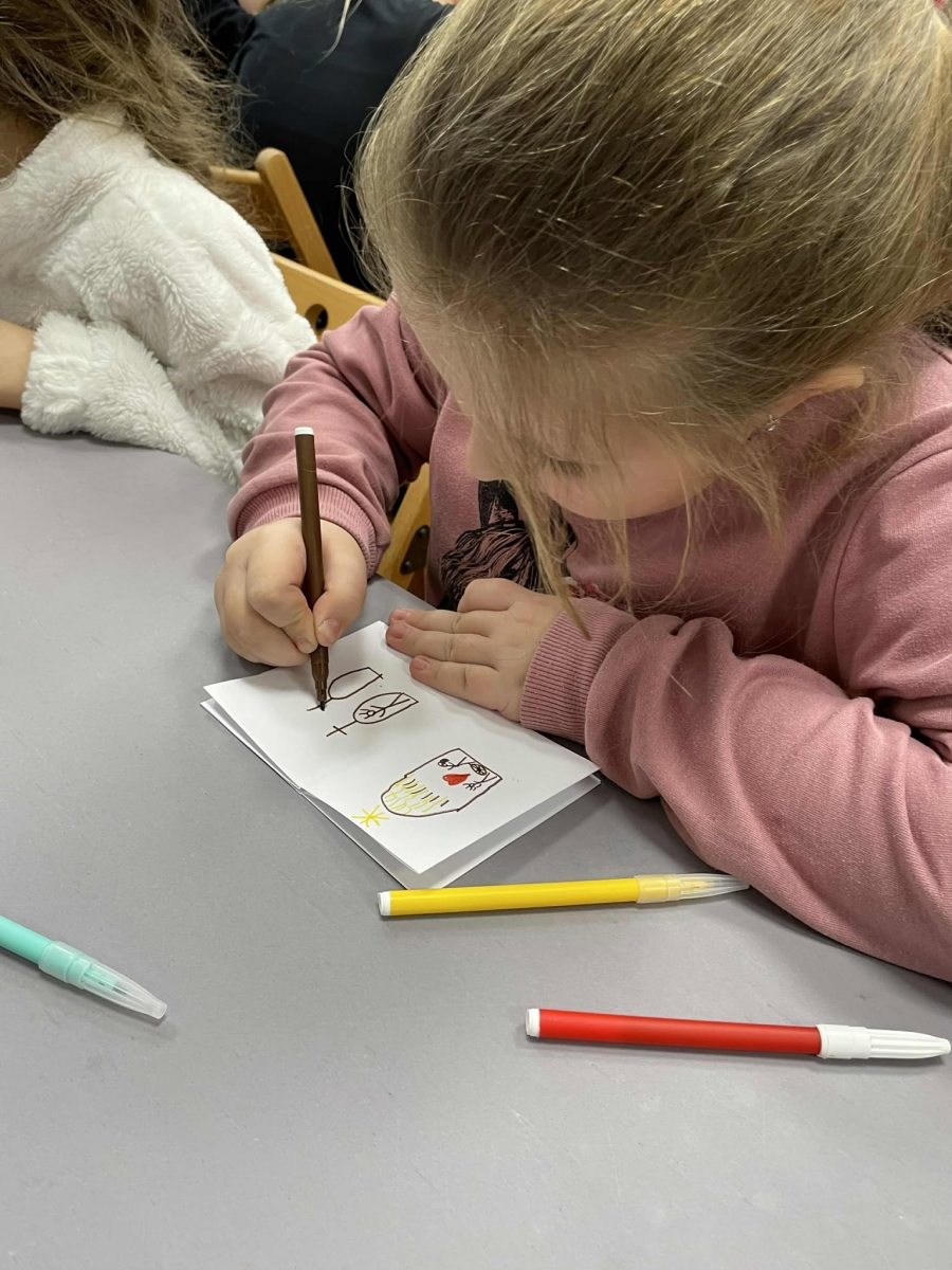 Zadaniem dzieci było wsłuchanie się w czytany tekst, by przelać historię czytaną w historię obrazkową. Wcielając się w rolę ilustratorów, tworzyli własne książeczki obrazkowe. Ich wyobraźnia ukazała piękne i wyjątkowe prace.