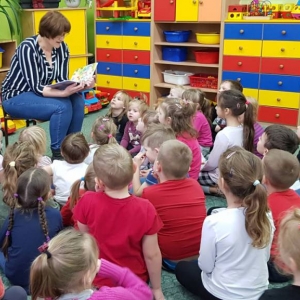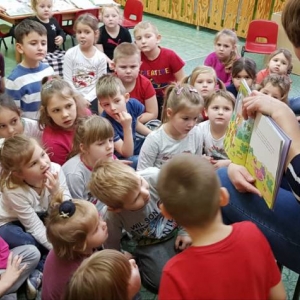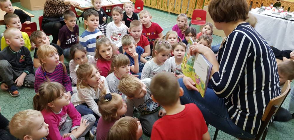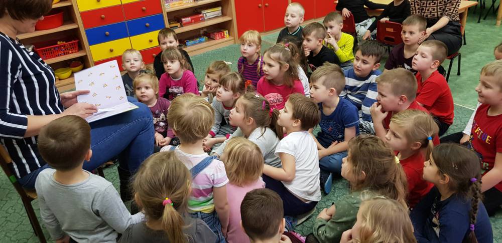 9 stycznia 2020 r. do Przedszkola w Zalesiu Wielkim po raz kolejny zawitała bibliotekarka z Biblioteki Publicznej w Kobylinie. Odwiedziny odbyły się w ramach akcji Objazdowa Biblioteka, której celem jest propagowanie czytelnictwa wśród dzieci.