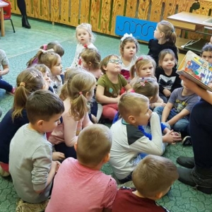 Tradycyjnie już przedszkolacy wysłuchali bajki przywiezionej przez gości, pt.: „Miś nie lubi się myć”. Dzieci dowiedziały się z niej, jak miła i potrzebna jest codzienna higiena, co się dzieje kiedy o nią nie dbamy.