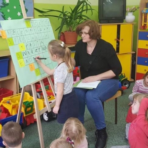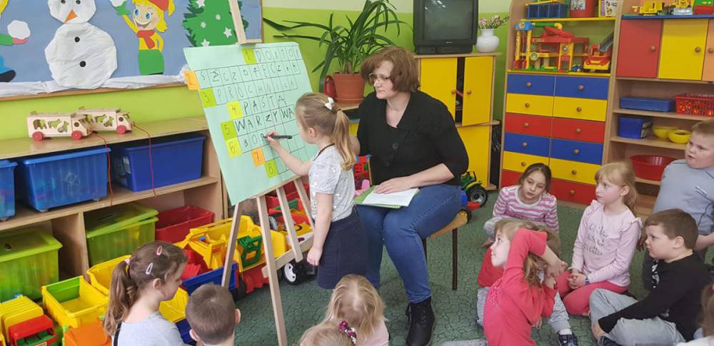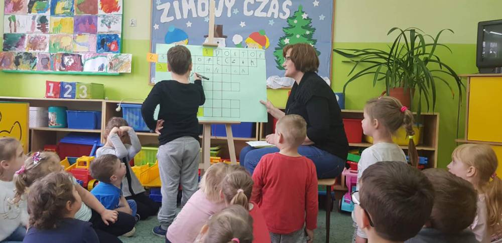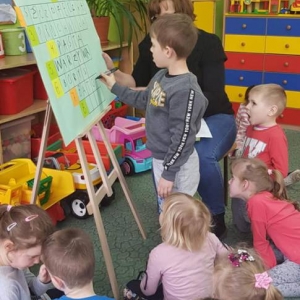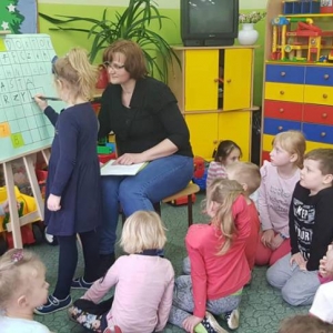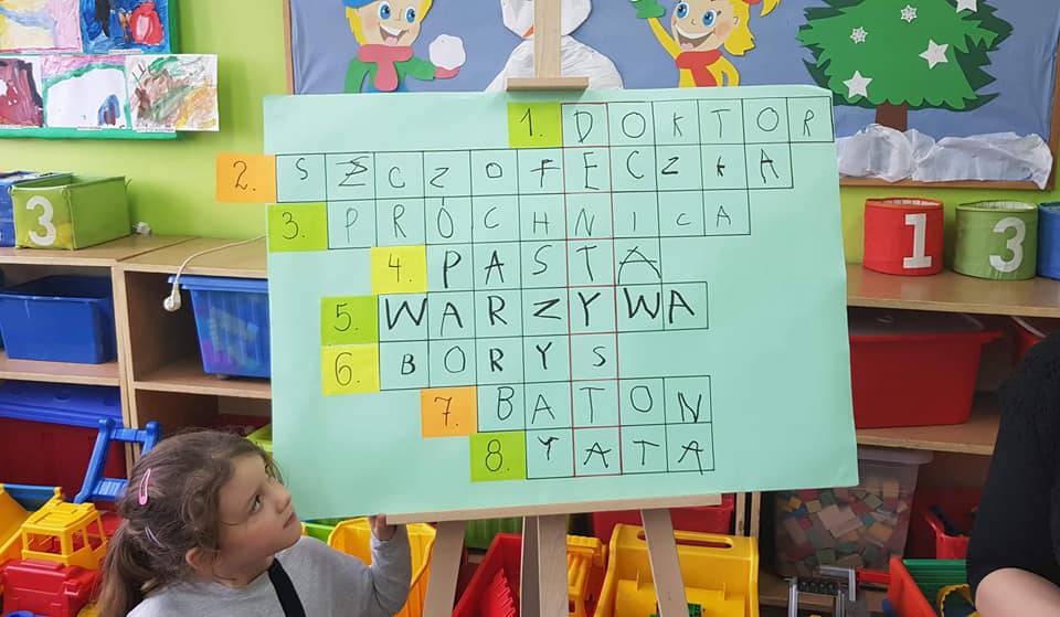 Przedszkolacy wysłuchali bajki pt. „ Tupcio Chrupcio. Dbam o zęby” Elizy Piotrowskiej. W trakcie czytania najmłodsi słuchacze dzielili się swoimi przeżyciami z wizyt u dentysty. Opowiadali w jaki sposób dbają o zęby. Po wysłuchaniu bajki dzieci miały za zadanie odpowiedzieć na pytania dotyczące czytanej książki. Nasi milusińscy okazali się uważnymi słuchaczami i rozwiązanie krzyżówki nie stanowiło dla nich problemu.