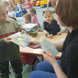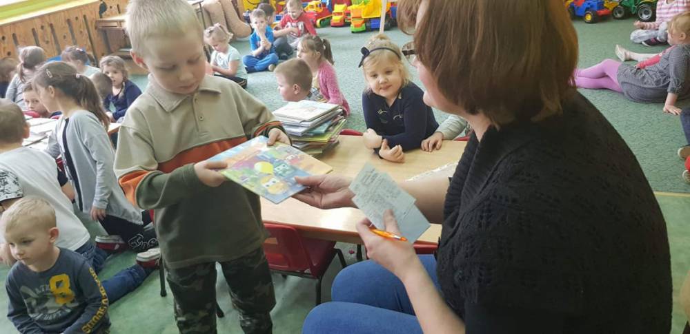 Na zakończenie spotkania starszacy wypożyczyli kolejną porcję książek do czytania wspólnie z rodzicami.