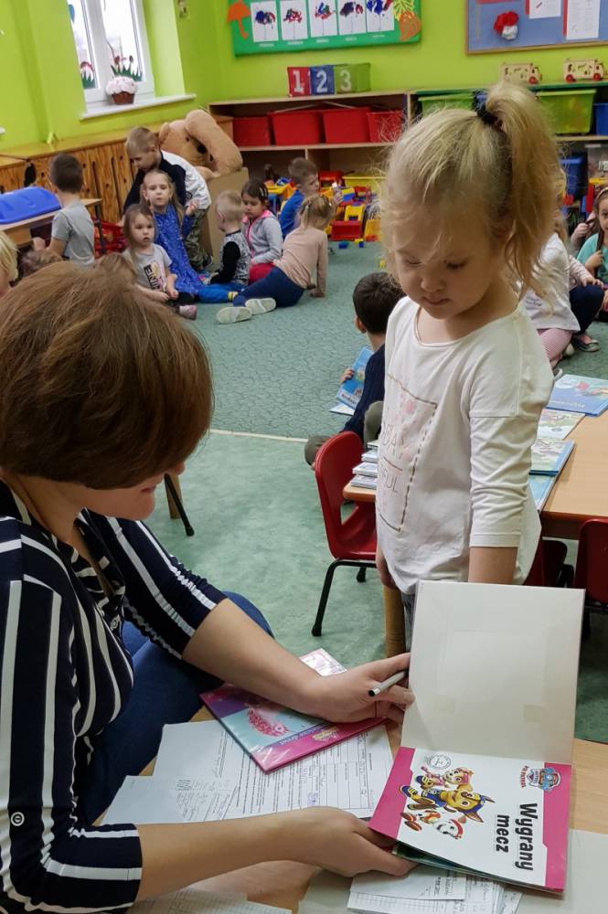 Na zakończenie spotkania, mali czytelnicy wypożyczyli kolejne książeczki do czytania w domu.