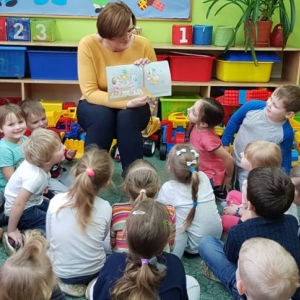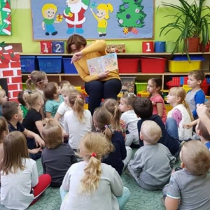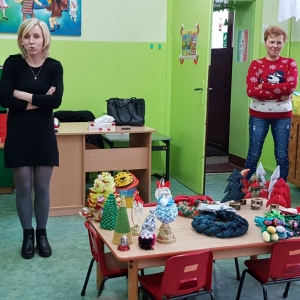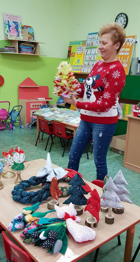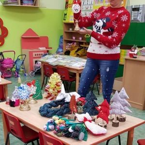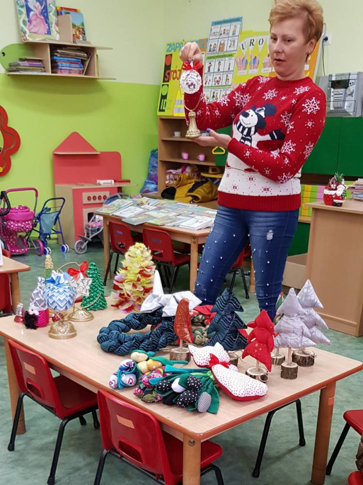 Tym razem, odwiedziły dzieci z panią Katarzyną Chlebowską oraz panią Moniką Morawską, których pasją jest rękodzieło. Na początku spotkania dzieci wysłuchały bajki pt. „Boże Narodzenie z Holly Babes” mówiącej o narodzinach Jezusa. Następnie przybyli goście opowiedzieli o swojej pasji. Mali słuchacze dowiedzieli się z jakich materiałów robią ozdoby, ile czasu poświęcają na swoje hobby, jak również w jaki sposób powstają tak piękne rzeczy. Panie opowiedziały kto zaraził je miłością do rękodzieła. Zachęcały dzieci do poszukiwania własnych zainteresowań.