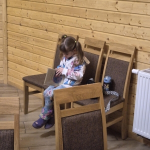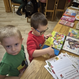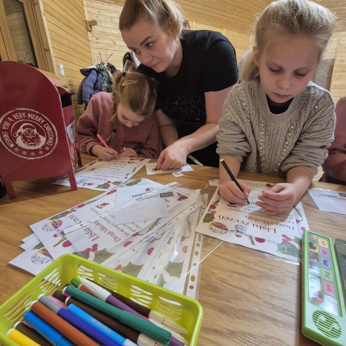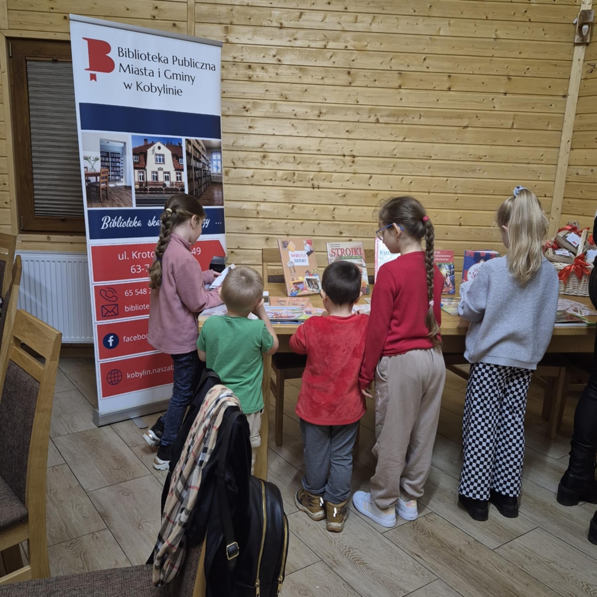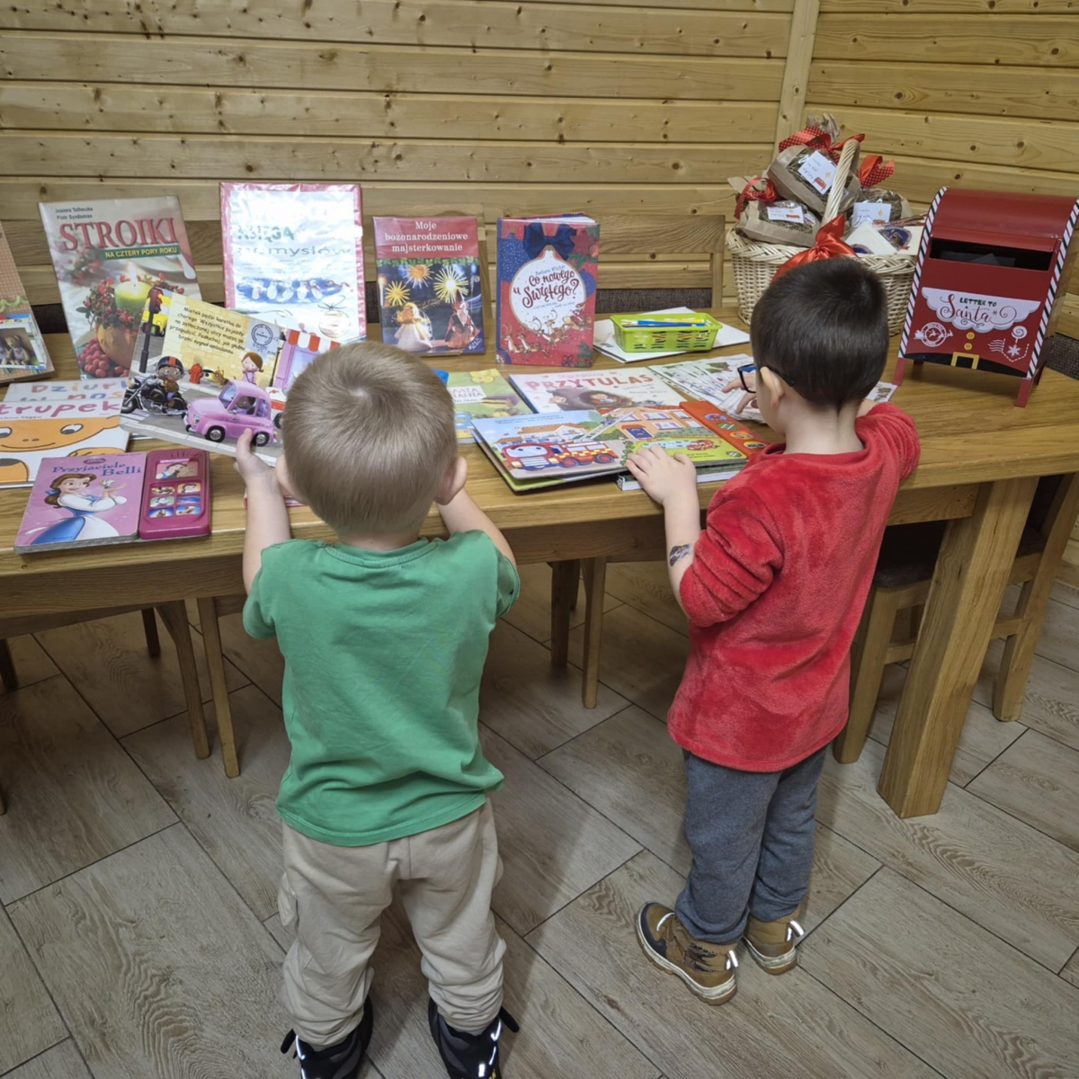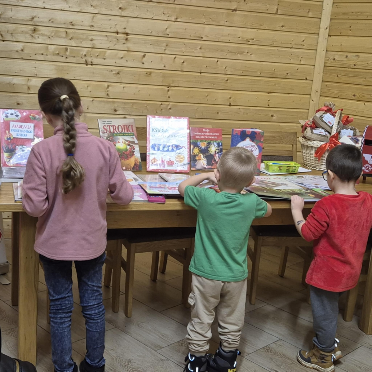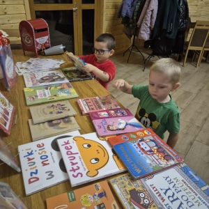 Tego wieczoru uczestnicy spotkania mieli możliwość skorzystania z Objazdowej Biblioteki. Mogli zwrócić książki do biblioteki i wypożyczyć kolejne pozycje . Dzieci razem z bibliotekarką mogły także napisać list do Św. Mikołaja, a następnie wysłać go do Laponii.