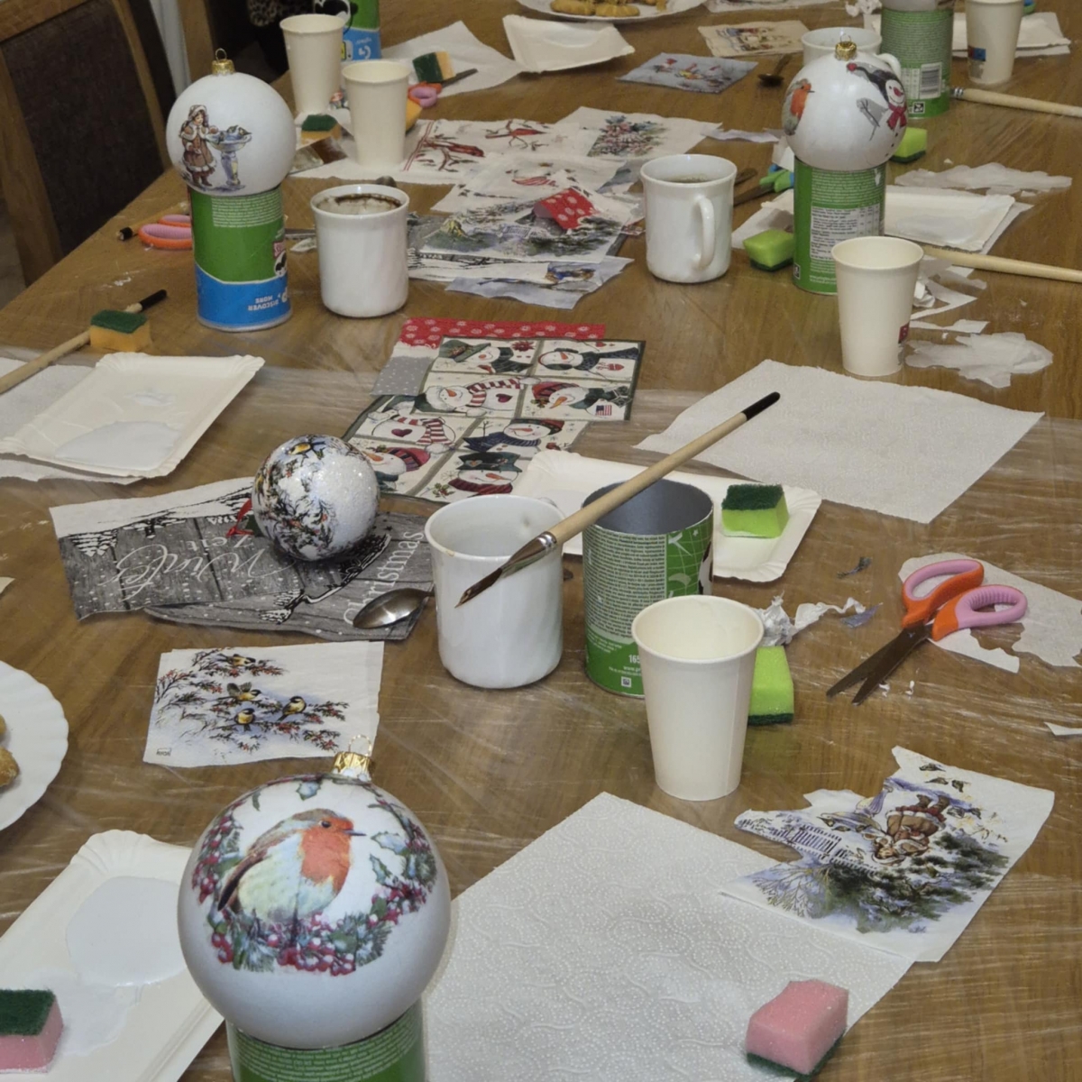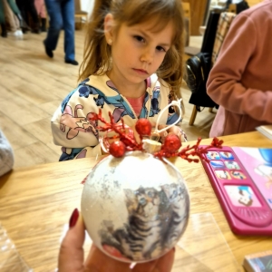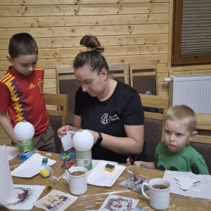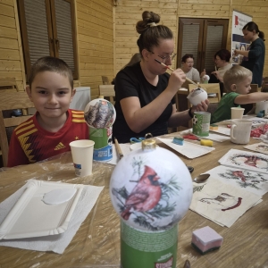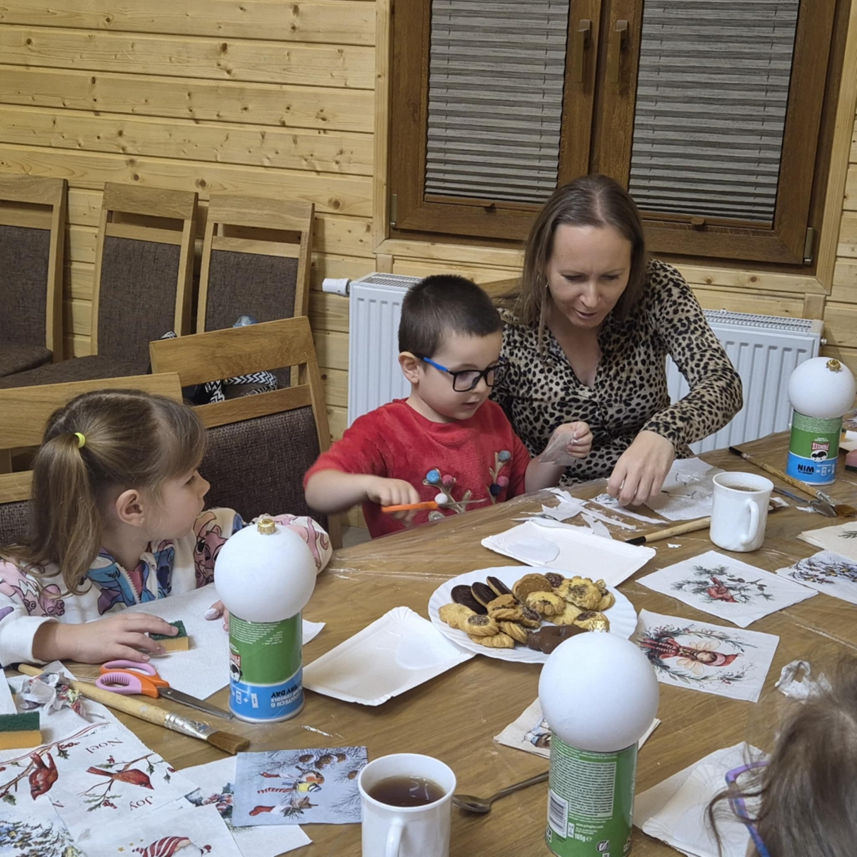 Odbyły się tam warsztaty decoupage z tworzenia bombek. Prowadzącą zajęcia rękodzielnicze była Ewelina Adler ( Zdolne Rączki ). Pod okiem instruktorki i przy użyciu serwetek, farb oraz ogromu wyobraźni powstały piękne ozdoby choinkowe.