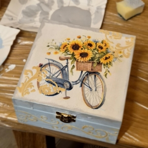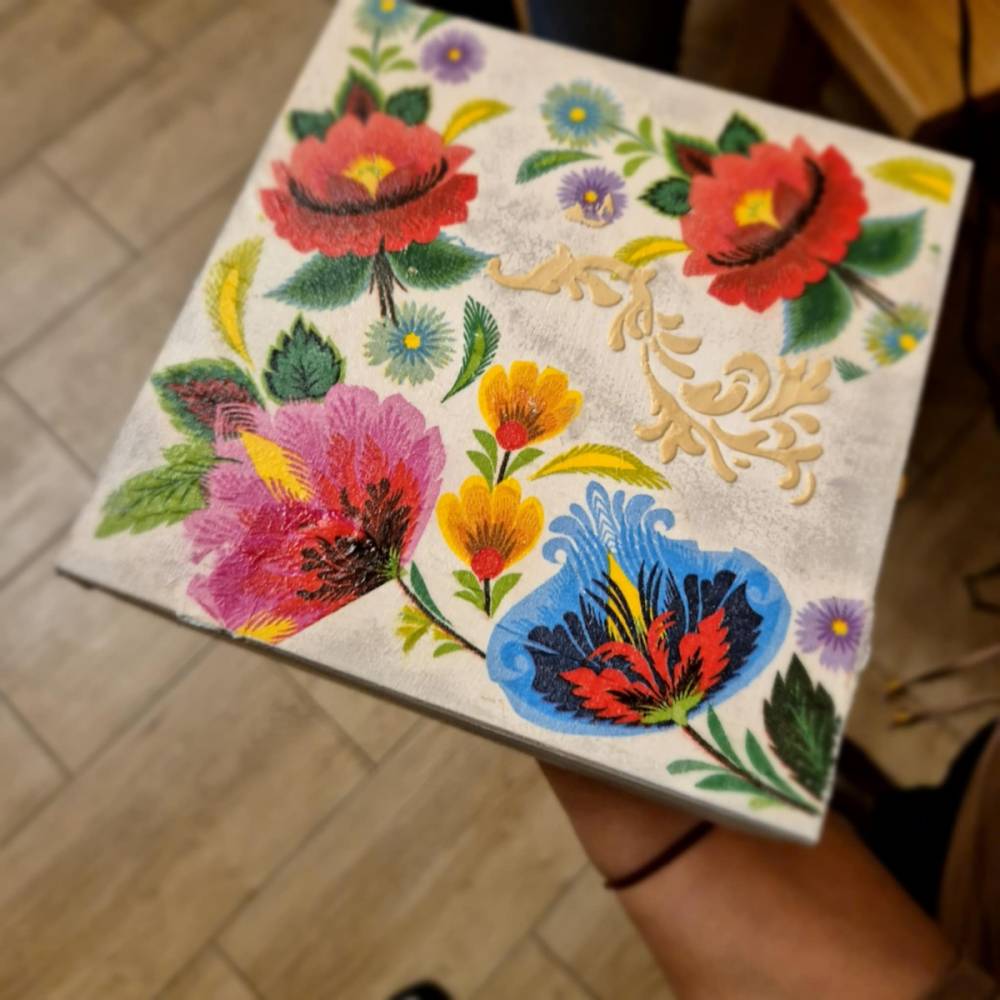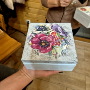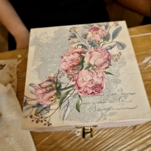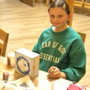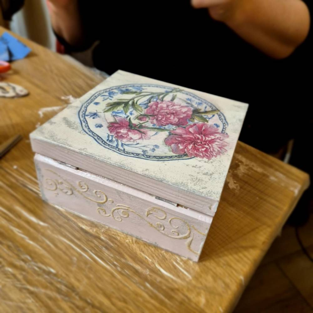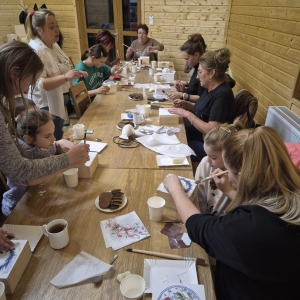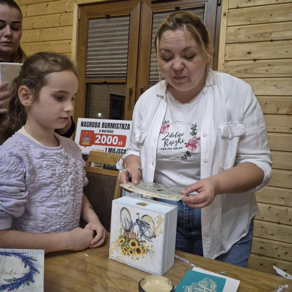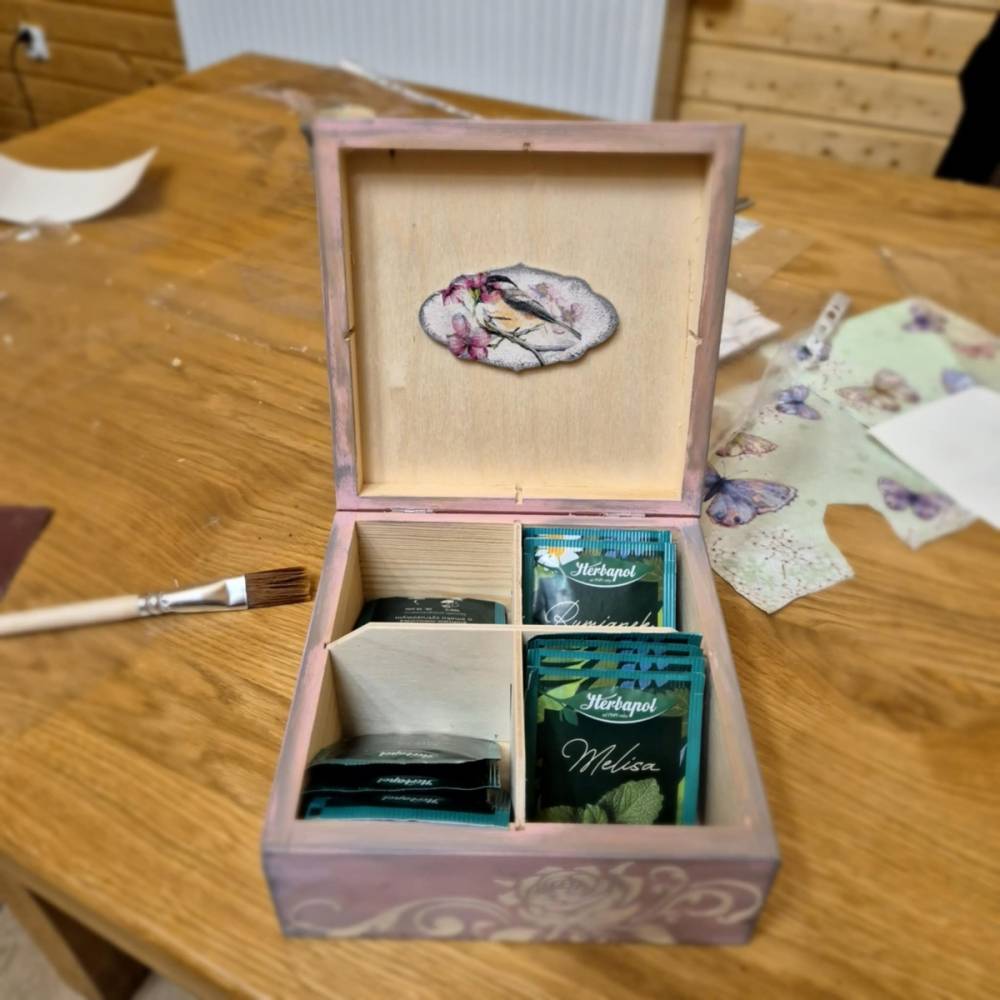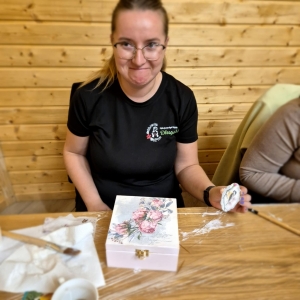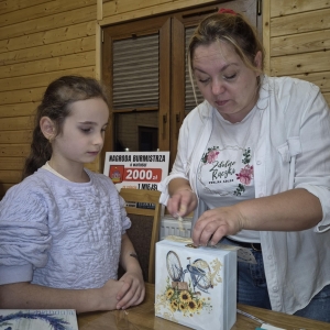 Odbyły się tam warsztaty decoupage z tworzenia herbaciarek. Prowadzącą zajęcia rękodzielnicze była Ewelina Adler ( Zdolne Rączki ). Pod okiem instruktorki i przy użyciu serwetek, farb oraz ogromu wyobraźni powstały piękne przedmioty.